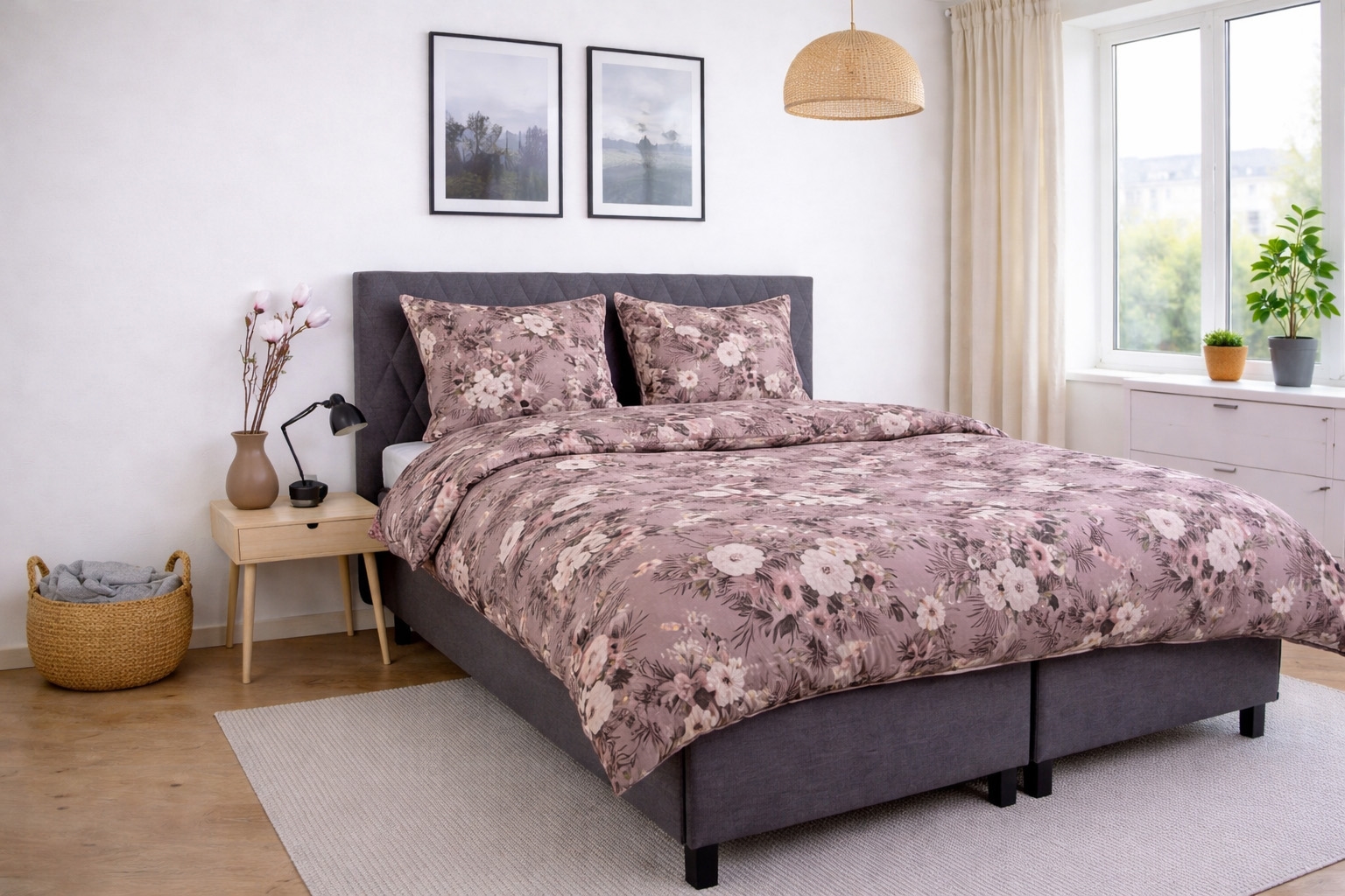Den vändbara designen ger dig två olika looks i ett örngott. Framsidan har ett elegant blommigt tryck, medan baksidan pryds av ett diskret prickmönster i en mer nedtonad stil. Detta lösa örngott gör det enkelt att matcha dina extra kuddar med resten av ditt sänglinne och ger större flexibilitet i inredningen.