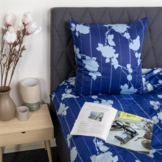 Skapa ett lugnt och exklusivt uttryck i sovrummet med detta blommiga lyxörngott i 100% bomullssatin från By Borg. Det stilfulla blommiga och randiga designet i blått ger ett tidlöst utseende som passar perfekt i både moderna och klassiska sovrum.