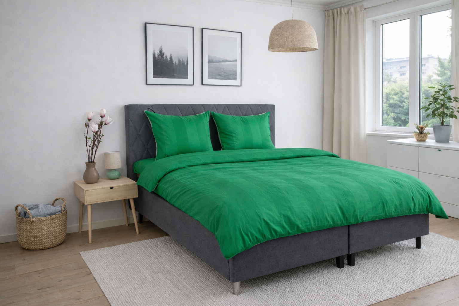 Framsidan »Kuddar » Kuddfodral Örngott 60x63 cm - 100% bomullssatin - Lone grön - Randigt, jacquardvävt örngott - Extra mjukt örngott från By Borg Spara47% By Borg 379,00199,00SEKSpara 180,- I lager Trustpilot Välj storlek Välj alternativ Antal Lägg i varukorgen Se mer från: By Borg Artikelnummer:814-9 Läs vår sängklädesguide Se vårt stora urval av lakan Se vårt stora urval av kuddar 60x63 Har du frågor om produkten? Supermjukt bomullssatinJacquardvävt randigt designExtra tät vävning - 300 TC Örngott: 1 st. á 60x63 cm Material: 100% bomullssatin Vävning: Fin jacquardvävning - 300 TC (Thread count = antal trådar per kvadrattum) Färg: Grön Design: Breda jacquardvävda ränder grön Varumärke: Excellent By Borg Stängning: Med dragkedja Tvätt: 60° Torktumling: Ja Tål strykning: Ja Certifiering: STANDARD 100 by OEKO-TEX® (M24LKFHY1 Hohenstein HTTI). Din garanti för att produkten är fri från hälsofarliga ämnen. Supermjukt örngott med jacquard invävda ränder, producerat i 100% bomullssatin i extra tät vävning. Kombinationen av det extra mjuka bomullssatinet och det täta jacquardvävda designet ger örngottet en helt särskild mjukhet och komfort. Kombinationen av material och invävda breda ränder gör inte bara örngottet stilrent i design, utan gör också att örngottet kommer att behålla sin mjukhet och form tvätt efter tvätt. Detta gör denna typ av sänglinne mycket populärt. Örngottet är tillverkat i 100% bomullssatin, med en extra tät och fin randig jacquardvävning på 300 TC. Denna täta TC ger örngottet en helt unik och lyxig mjukhet. Kännetecknet för denna typ av sänglinne är just den extraordinära mjukheten och känslan av det kraftiga materialet. Den fina bomullssatinen som är jacquardvävd av extra fina garner och har en helt tät vävning på hela 300 TC, vilket indikerar att det är inget mindre än 300 fina trådar vävda tillsammans per kvadrattum - och ju högre TC, desto tätare är vävningen. Kombinationen av den höga TC, fina bomullssatintrådar och vävmetodens art, gör att örngottet inte bara är otroligt skönt att sova med, utan också har en hög slitstyrka, andningsförmåga och absorptionsförmåga. Örngottet är 100% genomfärgat, vilket betyder att färgen under produktionen binds i bomullsfibrerna och ger örngottet en hög färgäkthet. Detta gör att materialets färg och design bevaras även efter upprepade tvättar. Köp lösa örngott till dina extra kuddar här Utnyttja samtidigt möjligheten att säkerställa ökad sovkomfort, genom att lägga till ett nytt mjukt lakan av hög kvalitet. Du hittar vårt stora sortiment av kvalitetslakan här Excellent By Borg har med sina danskproducerade täcken och kuddar, samt fantastiska sängkläder fokus på komfort och sömnoptimering. De vet att källan till en bra vardag och hög livskvalitet är kopplad till en optimal och god nattsömn. Därför har de gjort det enkelt för dig att hitta de rätta sovkomponenterna, som passar just dina behov. Produkterna från Excellent By Borg ger dig ytterst hög kvalitet samt en noggrann certifiering. Tillbaka till Kuddfodral