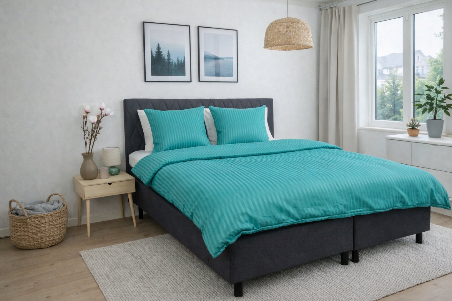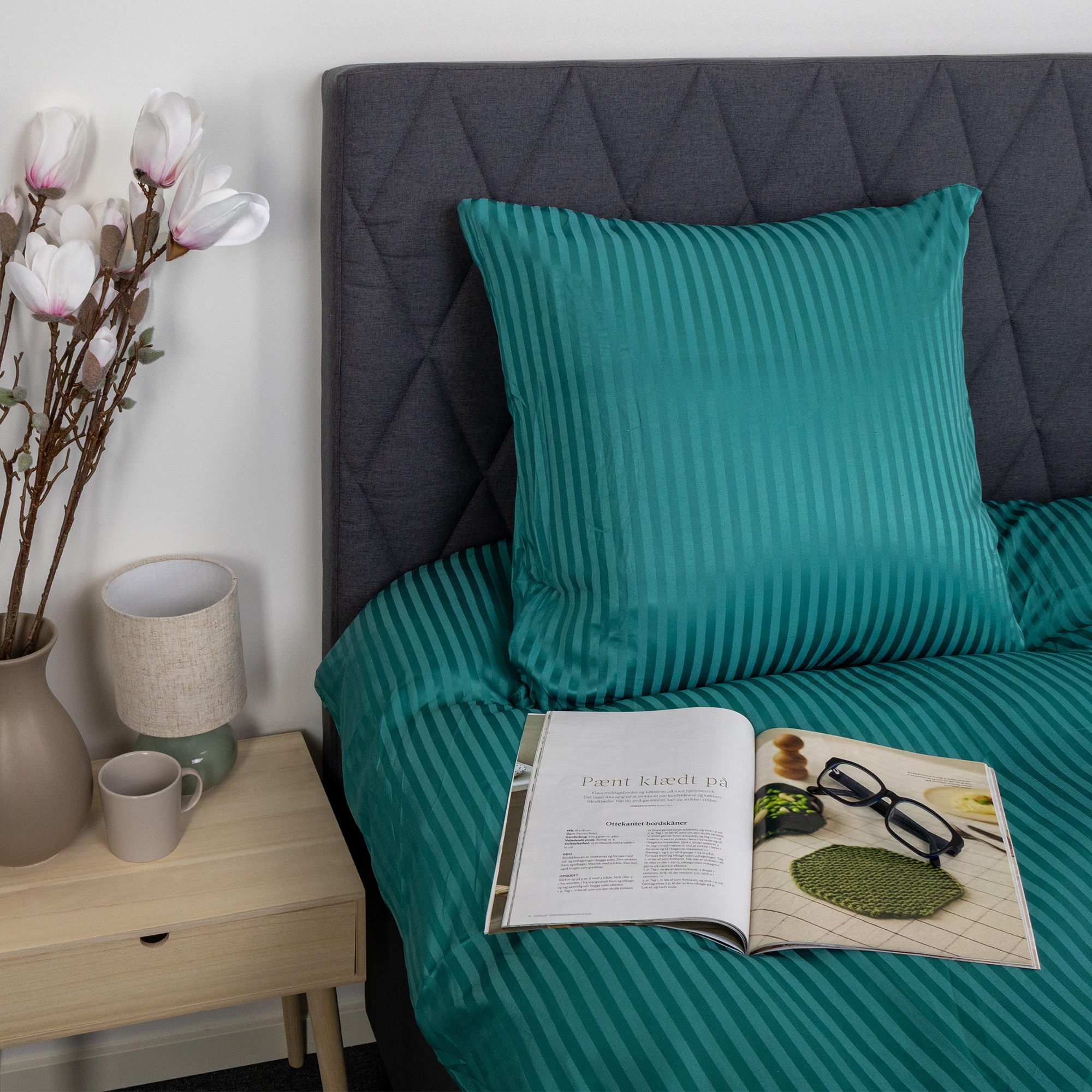 Enfärgat påslakanset i mikrofiber med ränder