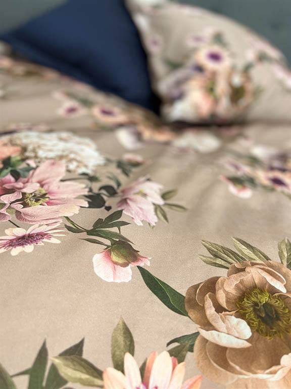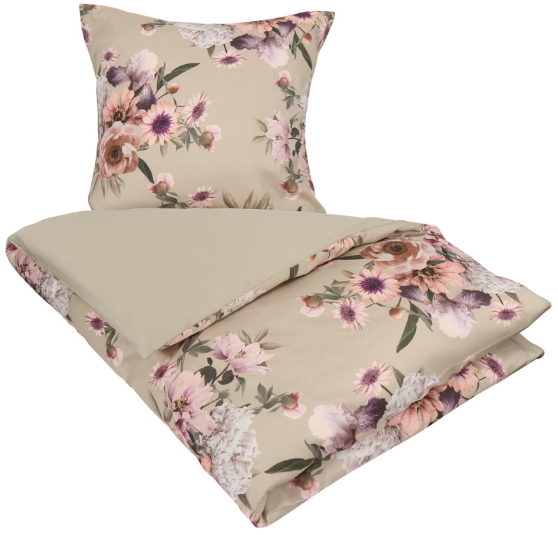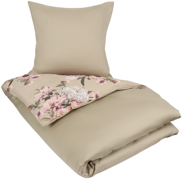 Blommiga sängkläder - 140x200 cm - Sand flower - Vändbart påslakan - 100% bomullssatin - Excellent By Borg bäddset