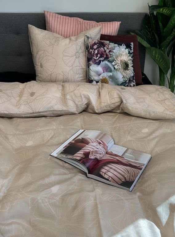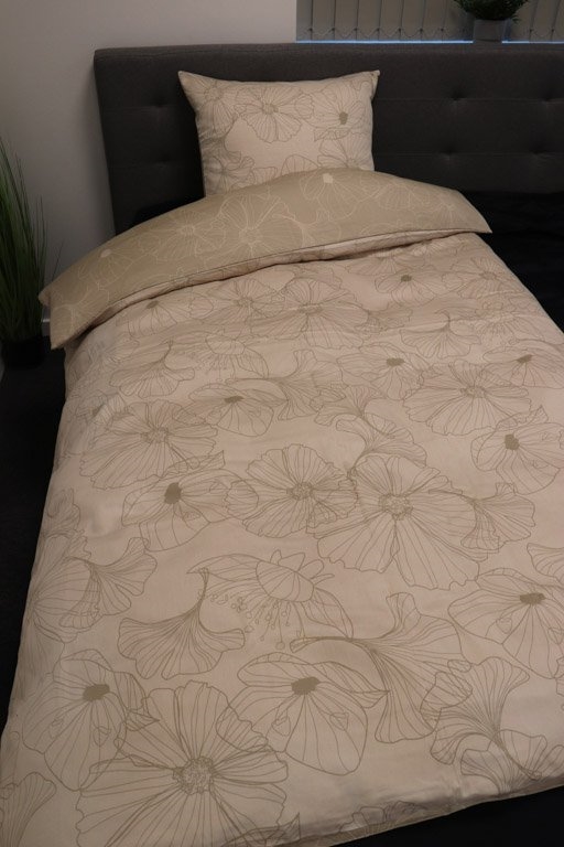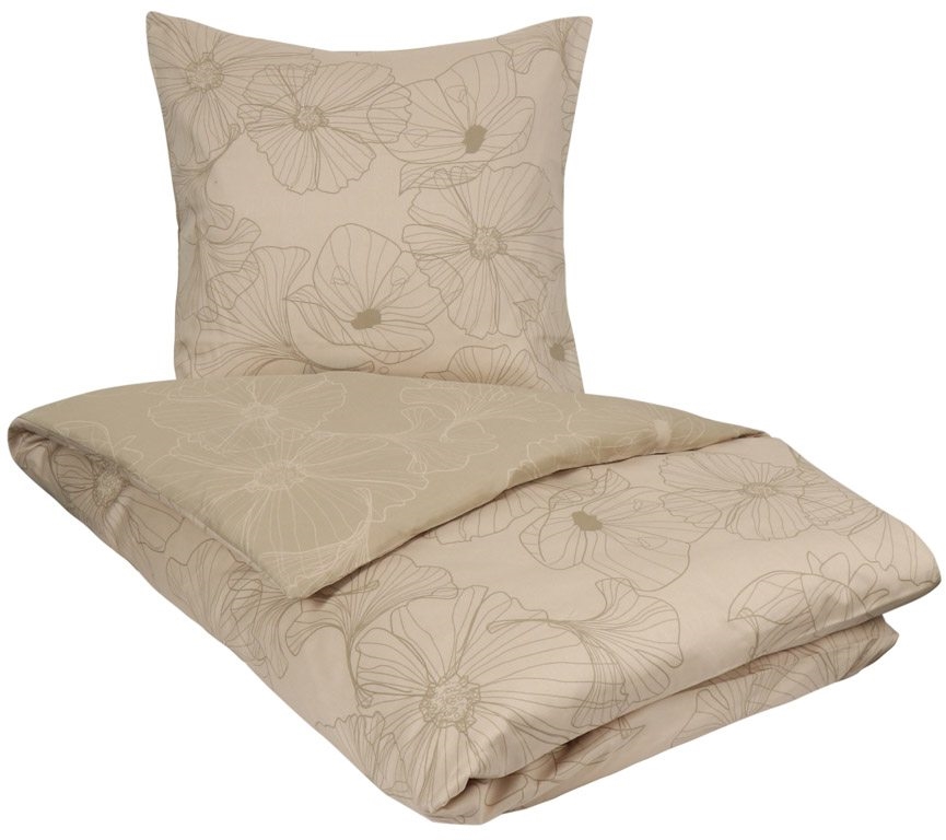 Sängkläder 140x200 cm - Vändbar design i 100% bomullssatin - Big Flower sand - Bäddset från By Night