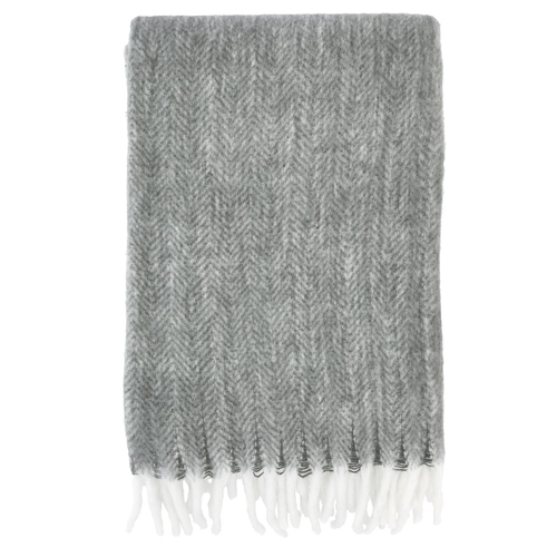 Den borstade kvaliteten ger en extra mjuk och fyllig textur, vilket gör pläden idealisk för avkoppling - oavsett om du sitter i soffan, läser en bok eller njuter av en kväll framför TV:n. Det traditionella sillbensmönstret och de långa dekorativa fransarna tillför ett exklusivt och mysigt uttryck, som passar perfekt i både moderna och klassiska hem.