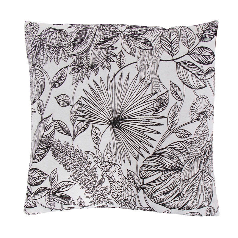 Prydnadskudde - 45x45 cm - Svart med tryck av fåglar och löv - Mjuk soffkudde från Borg Living