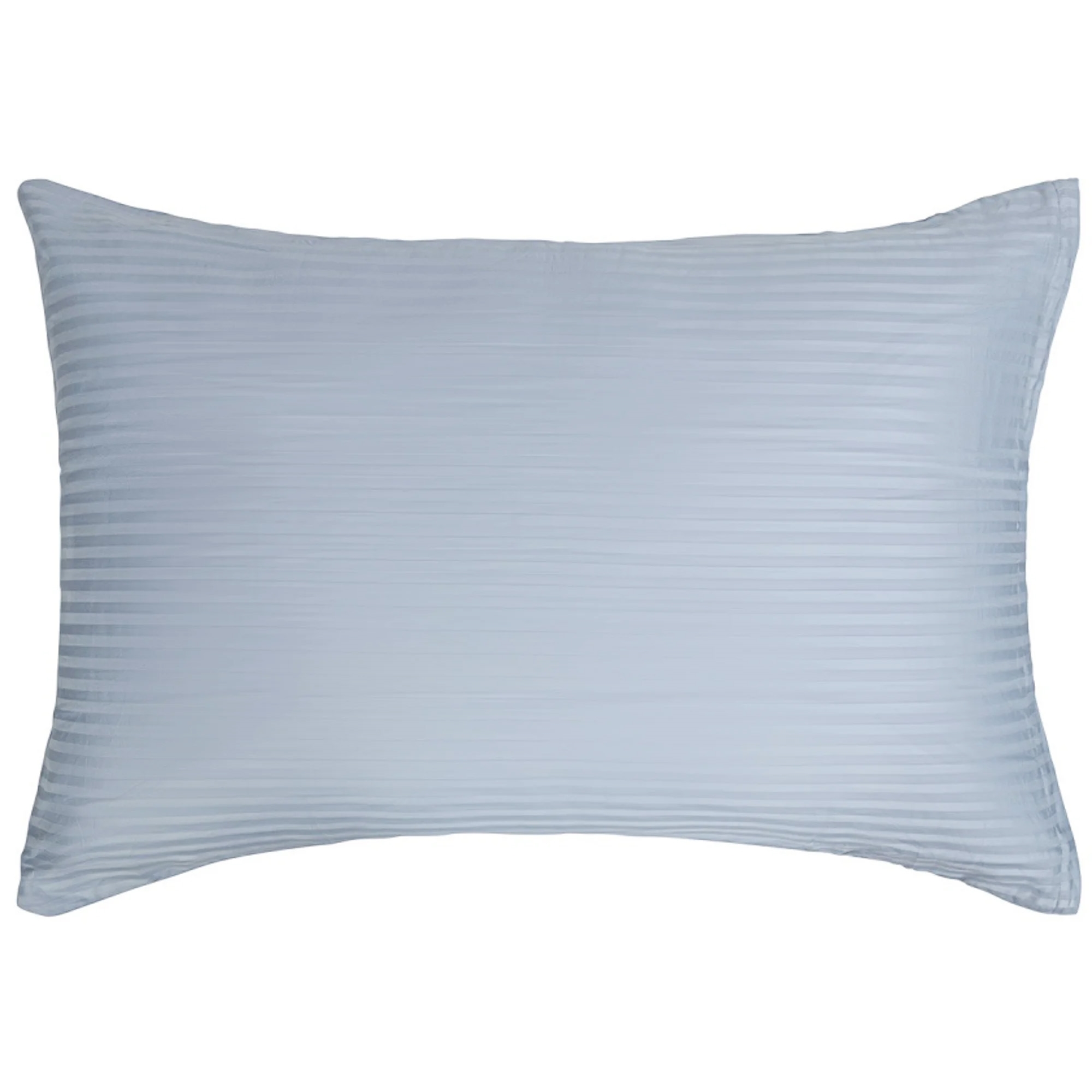 Den jacquardvävda designen med diskreta, enfärgade ljusblå ränder är vävd direkt in i tyget och skapar ett förfinat spel mellan matta och lätt blanka ytor. Jacquardvävningen kombinerad med den mjuka bomullssatinen ger ett stilrent och lyxigt uttryck som passar perfekt i både moderna och klassiska sovrum.