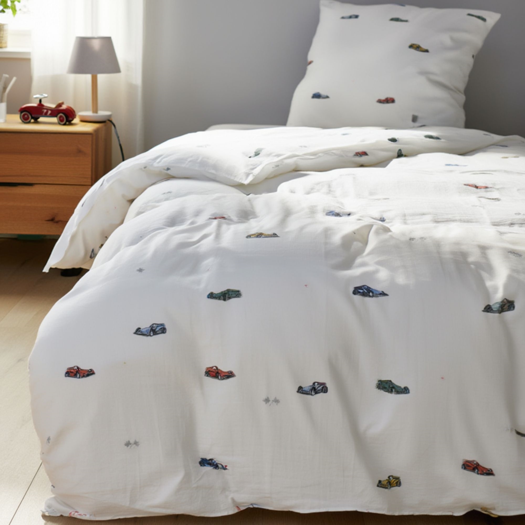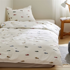 By Mats babysängkläder 70x100 cm - vitt med racerbilar