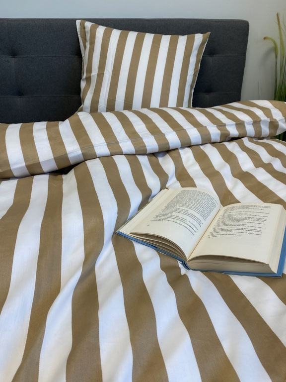 Nordic Stripe sängkläder är tillverkade av 100 % bomullssatin, med en extra fin och tät väv. Sängkläderna har en naturlig glans och mjukhet som ger bäddsetet en elegant look samtidigt som de känns mjuka och sköna mot huden. Bomullssatin andas och hjälper till att reglera kroppsvärmen, vilket gör det bekvämt att sova i året runt.