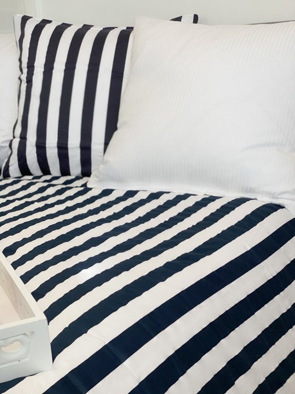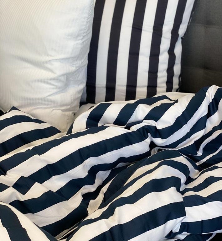 Framsidan »Sängkläder » Dubbelt påslakanset » Dubbelt påslakanset 200x220 cm Randiga sängkläder för dubbeltäcke - 200x220 cm - Mjuk bomullssatin - Nordic Stripe - Blått och vitt bäddset 2 x kuddfodralSpara46% Borg LivingBy Night 1.299,00699,00SEKSpara 600,- I lager Trustpilot Antal Lägg i varukorgen Se mer från: Borg Living Artikelnummer:353-5 Läs vår sängkläderguide Se vårt stora utbud av lakan Se vårt stora utbud av täcken 200x220 Har du frågor om produkten? Nordic Stripe100% bomullssatinExtra mjukt och fint Påslakan: 200x220 cm Örngott: 2 st. á 60x63 cm Material: 100 % mjuk bomullssatin Vävning: Extra fin 230TC (Trådtäthet = antal trådar per kvadrattum) Färg: Blå och vit Design: Nordic Stripe Varumärke: By Night Stängning: Påslakan och kuddfodral med dold YKK-dragkedja på insidan Tvätt: 60° Torktumling: Ja Tål strykning: Ja Certifiering: STANDARD 100 by OEKO-TEX® (2018OK0658) Nordic Stripe-sängkläder är gjorda av 100% bomullssatin, med en extra fin och tät vävning. Sängkläderna har en naturlig glans och mjukhet som ger bäddsetet ett elegant utseende, samtidigt som de känns mjuka och sköna mot huden. Bomullssatin andas och hjälper till att reglera kroppsvärmen, vilket gör det behagligt att sova i året runt. Bomullssatin är slitstarkt, 100 % färgfast och hållbart, vilket gör att sängkläderna behåller sin kvalitet och utseende även efter upprepade tvättar. Bäddsetet är STANDARD 100 by OEKO-TEX®-certifierat. Certifieringen säkerställer att produkten inte innehåller hälsoskadliga ämnen och att den är producerad under rätt förhållanden, så att du kan sova tryggt på natten – samtidigt tar vi också väl hand om miljön. Täcke- och kuddfodral är stängda med en dold YKK-dragkedja på insidan. Köp enkelt matchande kuddfodral till dina kuddar här Fräscha upp sängen och sovrummet med ett snyggt och härligt bäddset som detta. Passa samtidigt på att säkra maximal sovkomfort genom att lägga till ett nytt, mjukt lakan av hög kvalitet. Du hittar vårt stora sortiment av lakan här By Night är kända för dansk design – de ger dig bekväma sovkomponenter för din nattsömn i högsta kvalitet. By Night tillverkar sängkläder och lakan för hela familjen med stor vikt på aktuella trender, vilket innebär att deras produkter alltid omfattar moderiktiga färger och mönster. Tillbaka till Dubbelt påslakanset 200x220 cm
