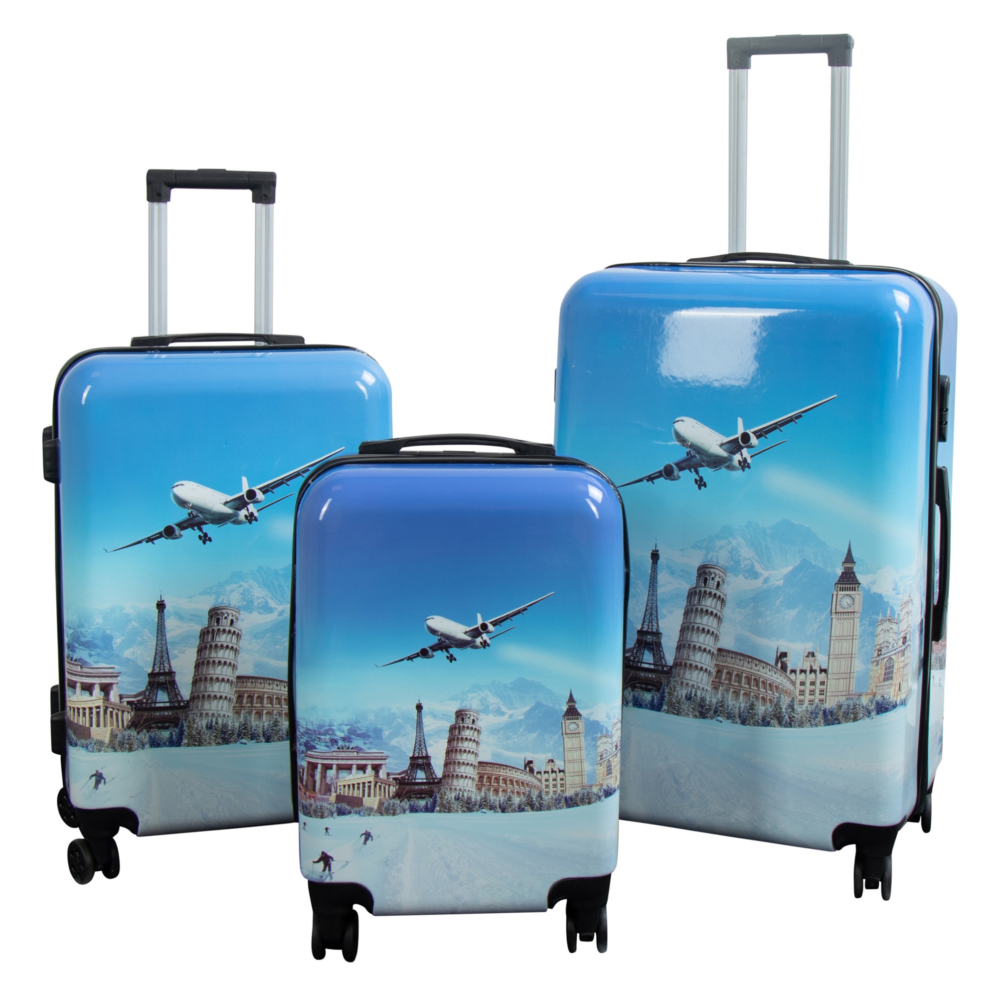 Framsidan »Resväskor Resväskset - 3 st. - Resväska med motiv - Flygplan - Hardcase lättvikt resväska med 4 hjul Spara46% Borg Living 4.599,002.499,00SEKSpara 2.100,- Fri frakt på denna varaFåtal i lager Trustpilot Antal Lägg i varukorgen Se mer från: Borg Living Artikelnummer:KC33 Se vårt utbud av stora handdukar Se vårt utbud av necessärer och skönhetsboxar Se vårt utbud av väskor och ryggsäckar Har du frågor om produkten? Resväskset - 3 st.Alla med 360° svängbara hjulMotiv: Flygplan Material: Hardcase - ABS lättvikt plast Motiv: Flygplan Antal: 3 st. kvalitetsresväskor Lås: Ja Hjul: 4x360° svängbara hjul Teleskophandtag: Stor resväska: 2 positioner Mellanresväska: 3 positioner Kabineresväsk: 4 positioner Bärhandtag: Ja, 2 st. Indelning: 2 fack - uppdelat med genomgående dragkedja Inre spännband: Ja, justerbara korsband Mått - Vikt - Volym Stor resväska: 72x48x30 cm • 3,9 kg • 104 L Mellanresväska: 60x41x28 cm • 3,1 kg • 69 L Kabineresväsk: 51x36x20 cm • 2,4 kg • 37 L Resväskset i en solid och praktisk utgåva. Setet har ett snyggt och lättigenkännligt motiv med flygplan. Funktionellt och bekvämt resväskset i snygg och exklusiv design. Setet består av 3 rymliga resväskor i praktiska storlekar – du är väl täckt, oavsett vilka dina resebehov är. Resväskorna är tillverkade av robust och slitstark lättvikts ABS-plast, vilket gör dem både starka och motståndskraftiga mot hårda stötar och tryck som kan uppstå på t.ex. bagageband. Med detta set är du garanterad ett gediget och hållbart resväskset när du är på resande fot. Resväskorna är utrustade med två praktiska bärhandtag: ett på sidan, ett ovanpå, samt ett teleskophandtag. Teleskophandtagen kan justeras in 4, 3 och 2 positioner, beroende på den enskilda resväskans storlek. På ena sidan av resväskorna finns 4 små "fötter" så att de alltid står säkert när du lägger undan dem, vilket undviker blöta och smutsiga resväskor. Resväskorna har 4 st. lättgående 360° svängbara hjul, vilket gör dem enkla och bekväma att ha med genom flygplatsen eller stationen. Resväskorna är otroligt lätta att transportera och manövrera. Alla resväskor i setet har ett integrerat lås och en kraftig dragkedja. Komplettera din reseutrustning med en smart och praktisk necessär. Se vårt urval här. Resväskorna är minst lika funktionella inuti som utanpå - de kan delas upp i två separata fack. Det ena facket har justerbara remmar för att hålla kläderna på plats och det andra facket har dragkedja så att lösa föremål inte glider runt bland kläderna. Tillbaka till Resväskor