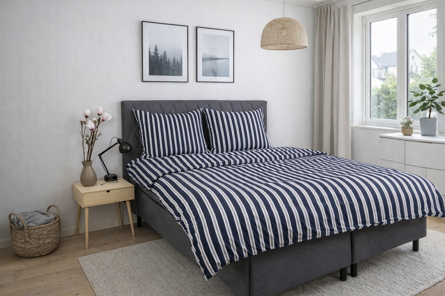 Sängkläder i 100% bomullssatin - randigt print