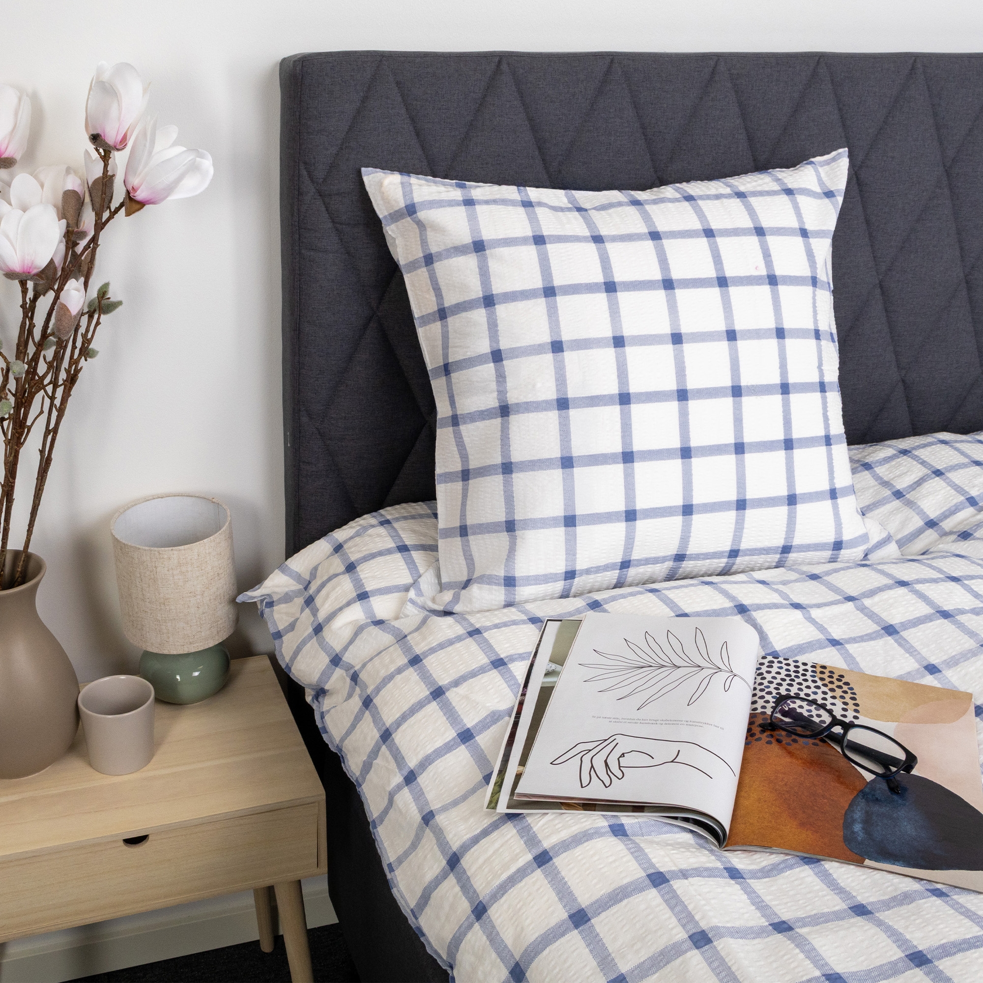 Påslakan och örngott stängs med dragkedja, vilket gör det enkelt att byta sängkläder och håller både täcke och kudde säkert på plats under natten. Det rutiga mönstret ger ett lugnt och tidlöst uttryck som passar väl in i både moderna och klassiska sovrum.