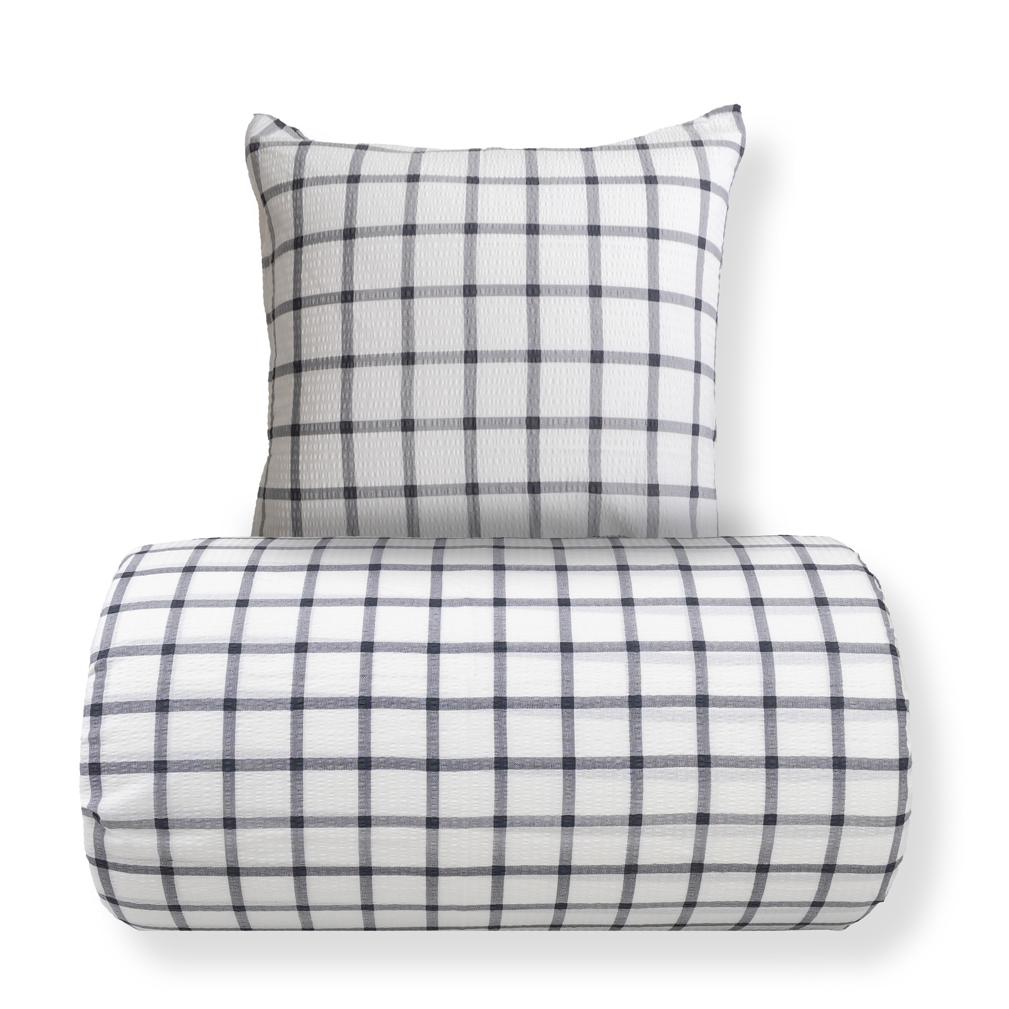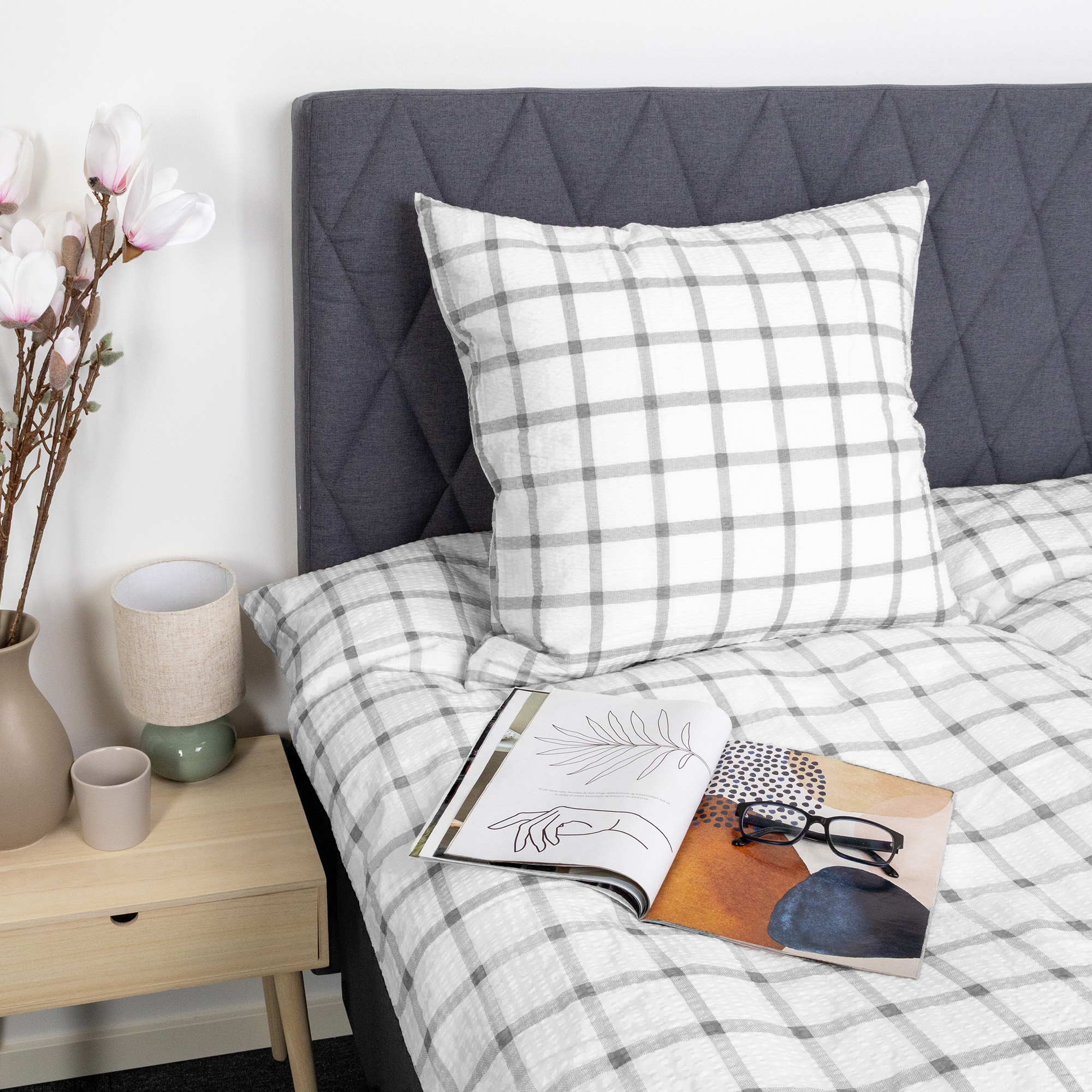 Påslakan och örngott stängs med dragkedja, vilket gör det enkelt att byta sängkläder och håller både täcke och kudde säkert på plats under natten. Det rutiga mönstret ger ett lugnt och tidlöst uttryck som passar bra i både moderna och klassiska sovrum.