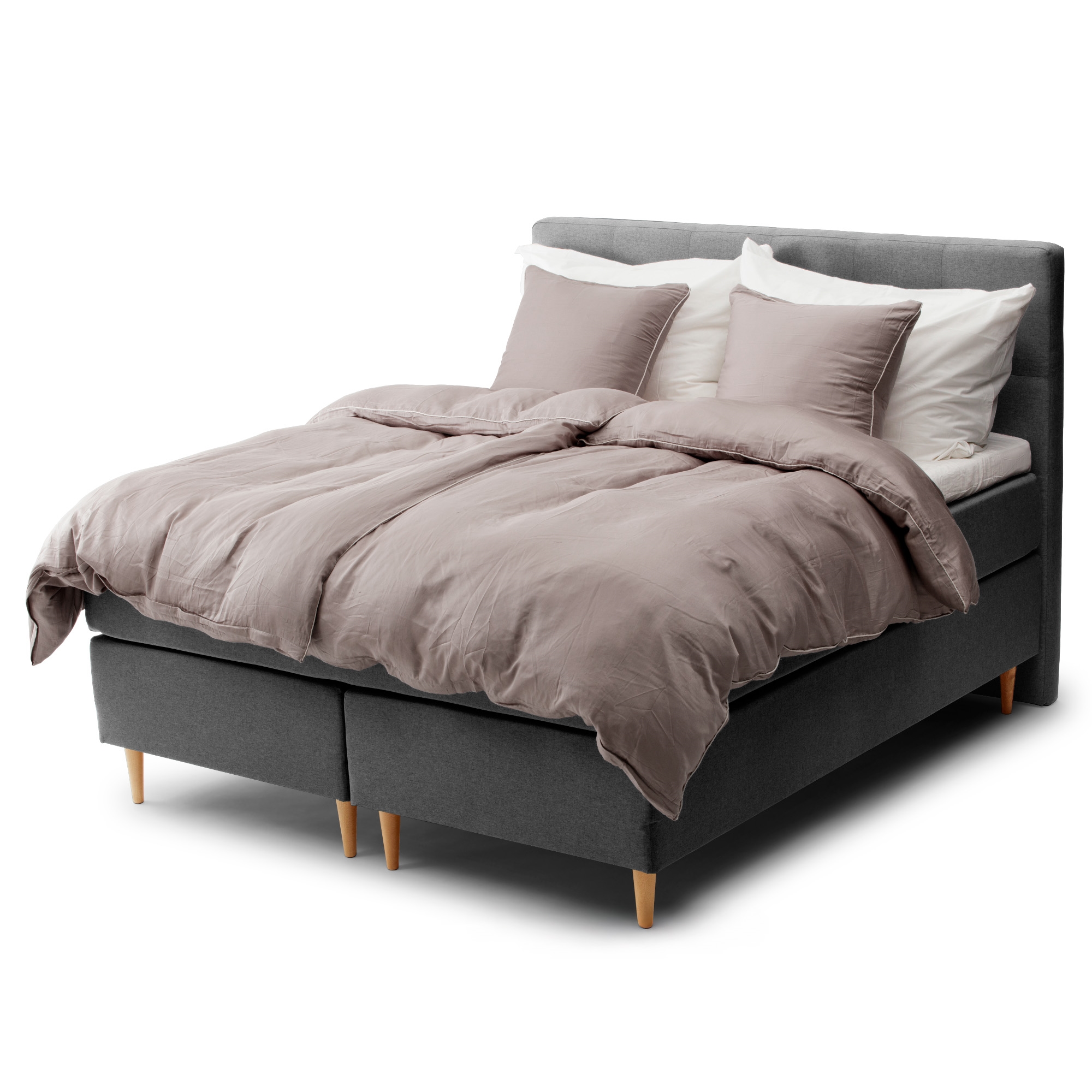 Framsidan »Sängkläder Sängkläder 140x200 cm - 100% bomullssatin - Solid grå sängkläder med pipingkant - Extra mjukt sängset från By Borg Spara57% By Borg 1.599,00685,00SEKSpara 914,- I lager Trustpilot Antal Lägg i varukorgen Se mer från: By Borg Artikelnummer:807-1 Läs vår sängklädesguide Se vårt stora utbud av lakan Se vårt stora utbud av täcken 140x200 Har du frågor om produkten? Extra fin och tätvävdOtroligt mjuk bomullssatinExklusivt och stilrent uttryck Täckeöverdrag: 140x200 cm Kuddefodral: 1 st. á 60x63 cm Material: 100% bomullssatin Vävning: Extra fin 300 TC vävning (Thread count = antal trådar per kvadrattum) Färg: Grå med ljusgrå kant Design: Solid grå med pipingkant Varumärke: Excellent By Borg Stängning: Täcke- och kuddefodral med inre dold dragkedja Maskintvätt: 60° Torktumling: Ja Tål strykning: Ja Certifiering: STANDARD 100 by OEKO-TEX® (M24LKFHY1 Hohenstein HTTI). Din garanti för att produkten är fri från hälsofarliga ämnen. Elegant sängset i extra mjuk och helt tät vävning med 300 TC. Sängkläderna består av en snygg enfärgad design med en stilfull pipingkant och mycket mjuk bomullssatin. Den enkla designen och den helt fina täta vävningen, ger tillsammans ett exklusivt uttryck och inte minst sängkläderna sin extra mjuka känsla av lyx. Sängkläderna är tillverkade i 100% bomullssatin, med en extra tät och fin vävning på 300 TC. Denna täta TC ger sängkläderna en helt unik och lyxig mjukhet. Kännetecknet för denna typ av sänglinne är just den extraordinära mjukheten och känslan av det kraftiga materialet. Den fina bomullssatinen som är vävd av extra fina garner och har en helt tät vävning på hela 300 TC, vilket indikerar att det är inte mindre än 300 fina trådar vävda tillsammans per kvadrattum - och ju högre TC, desto tätare är vävningen. Kombinationen av den höga TC, fina bomullssatintråden och vävmetodens art, gör att sängkläderna inte bara är otroligt sköna att sova med, men också har en hög slitstyrka, andningsförmåga och absorberingsförmåga. Sängkläderna är 100% genomfärgade, vilket innebär att färgen under produktionen binds i bomullsfibrerna och ger sängkläderna en hög färgäkthet. Detta gör att materialets färg och design bevaras även efter upprepade tvättar. Sängkläderna stängs med dold dragkedja i både täcke och kuddefodral. Köp lätt kuddefodral till dina extra kuddar här Passa samtidigt på att säkra dig ökad sovkomfort, genom att lägga till ett nytt mjukt lakan av hög kvalitet. Du hittar vårt stora sortiment av kvalitetslakan här Excellent By Borg har med sina danska tillverkade täcken och kuddar, samt fantastiska sängkläder fokus på komfort och sömnoptimering. De vet att källan till en bra vardag och hög livskvalitet är kopplad till en optimal och god nattsömn. Därför har de gjort det enkelt för dig att hitta de rätta sovkomponenterna, som passar just ditt behov. Produkterna från Excellent By Borg ger dig mycket hög kvalitet samt en grundlig certifiering. Tillbaka till Sängkläder