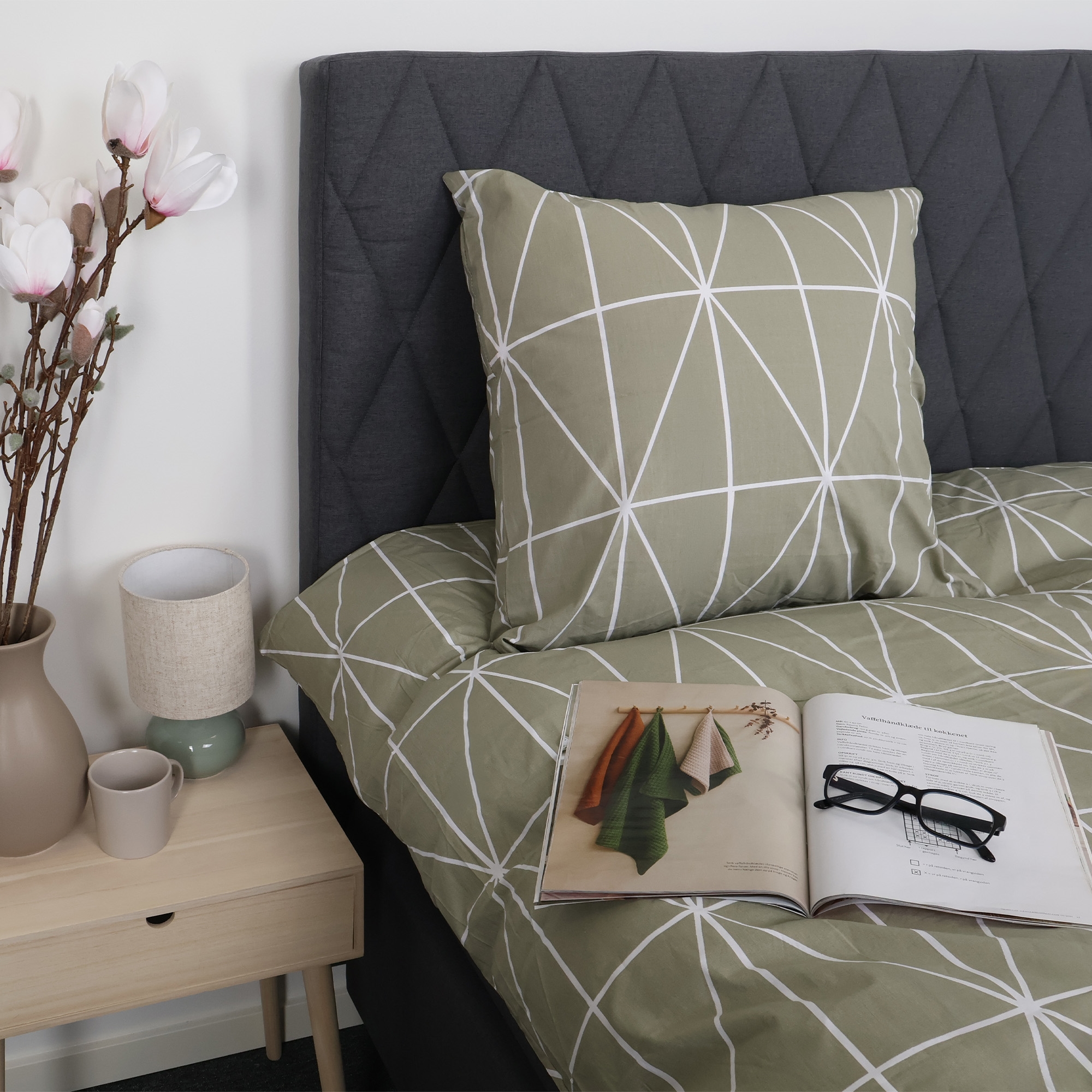 Ge sovrummet ett stilrent och lugnt uttryck med dessa eleganta sängkläder i bomull från Nordstrand Home. Den klassiska harlekin-designen i grönt skapar en harmonisk atmosfär och passar perfekt in i både modern och nordisk inredning.\r