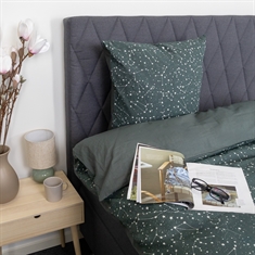 Ge sovrummet ett dekorativt och stilfullt uttryck med detta bäddset i 100% bomull med vändbar design. Den vändbara designen ger dig två olika looks i ett bäddset. Framsidan har ett stjärnmönster, medan baksidan är enfärgad i en mer nedtonad stil. Det gör sängkläderna enkla att kombinera med olika färger, kuddar och plädar och ger större flexibilitet i inredningen.