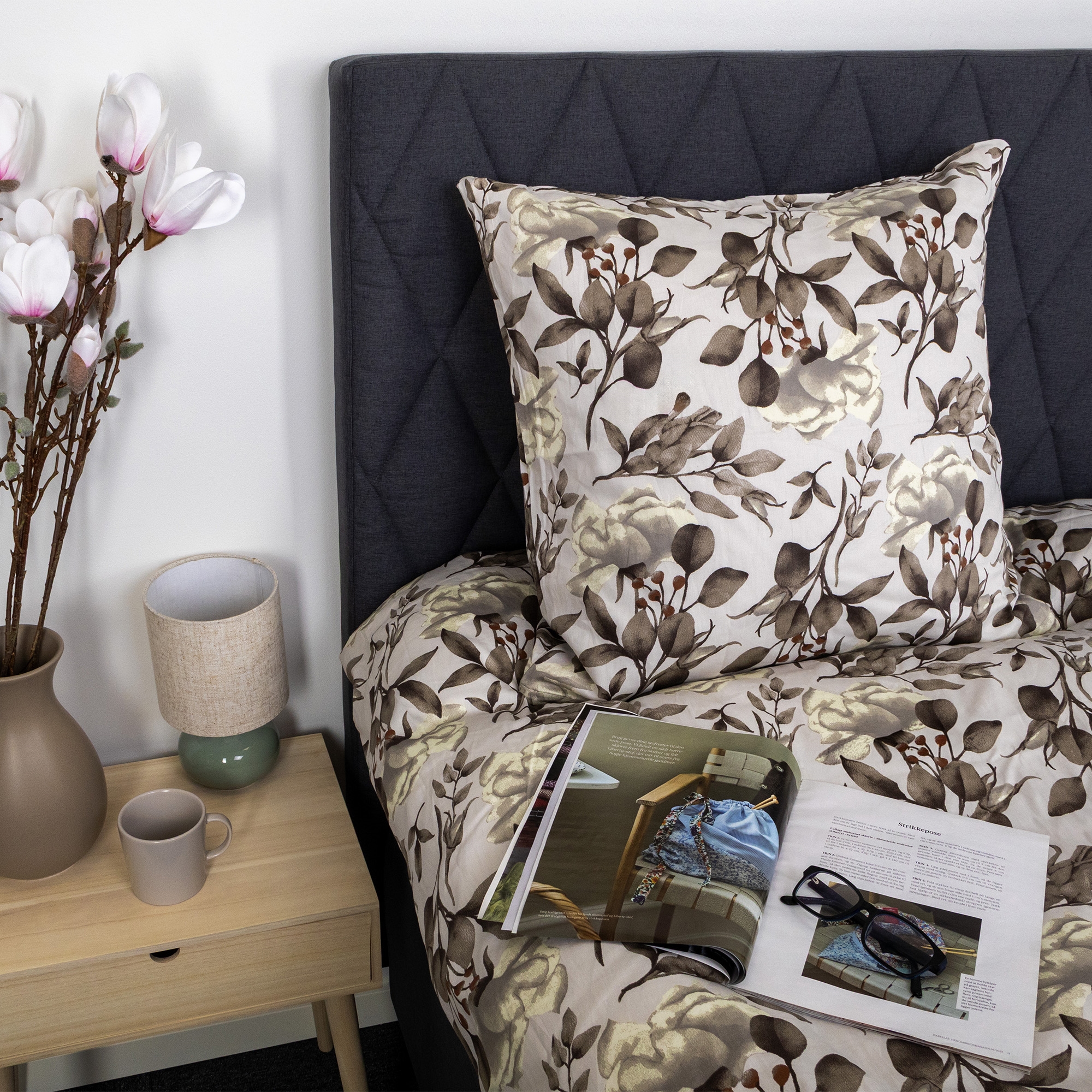 Sängkläder i 100% bomullssatin - blommönster