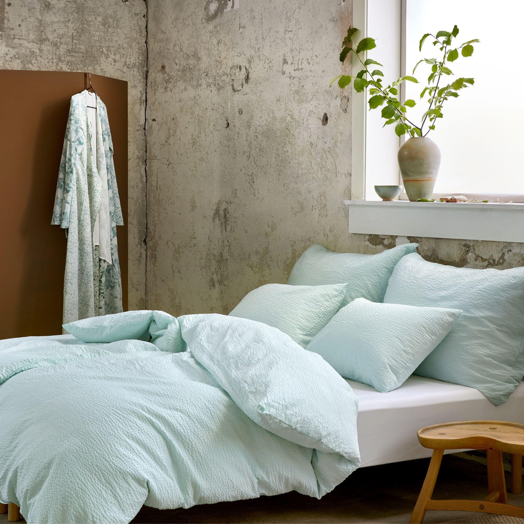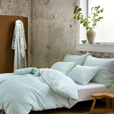 Framsidan »Sängkläder » Enkelt påslakanset » Enkelt påslakanset 140x200 cm Sängkläder 140x200 cm - Kreppsängkläder - Høie Of Scandinavia - Sanna Aqua Spara40% Høie Of Scandinavia 999,00599,00SEKSpara 400,- I lager Trustpilot Välj storlek Välj alternativ Antal Lägg i varukorgen Se mer från: Høie Of Scandinavia Artikelnummer:8145-1 Läs vår sängklädessguide Se vårt stora utbud av lakan Har du frågor om produkten? Kreppsängkläder med vågig, våfflad strukturKänns luftig och sval mot hudenIdealiskt för dig som blir varm om natten Påslakan: 140x200 cm Örngott: 1 st. à 60x63 cm Material: 100% bomullskrepp Vävning: 148TC krepp (Trådtäthet = antal trådar per kvadrattum) Färg: Ljusblå Design: Sanna Aqua Varumärke: Høie of Scandinavia Stängning: Påslakan med dragkedja, örngott med överlapp Tvätt: 60° Torktumlare: Ja Strykning: Ja Certifiering: STANDARD 100 by OEKO-TEX® (19.HIN.85821). Din garanti för att produkten är fri från hälsofarlig kemi. Enfärgat sänglinne i krepp från Høie Njut av en lätt, luftig och behaglig nattsömn med krepp i 100% bomull. Denna speciella väv — även känd som bomullskrepp eller krepp-sänglinne — skapar den karaktäristiska vågiga och lätt skrynkliga strukturen som ger sänglinnet sitt luftiga uttryck och svala komfort. Kreppväven bildar små luftfickor i tyget, vilket gör sänglinnet extra andningsbart och lätt att sova i. Ytan känns svalare mot huden än traditionellt slätt sänglinne och är därför särskilt lämpad för varma nätter eller för dig som ofta blir varm när du sover. Samtidigt behåller bomullen sin naturliga mjukhet och förmåga att absorbera fukt, så du får en behaglig och torr sovkomfort. Sänglinnet har en trådtäthet på 148TC, vilket säkerställer en god balans mellan hållbarhet, komfort och mjukhet. Den våfflade strukturen gör att sänglinnet inte behöver strykas för att se fint ut — det karakteristiska uttrycket är en naturlig del av designen. Sänglinnet är OEKO-TEX®-certifierat enligt STANDARD 100, vilket betyder att det är testat och fritt från hälsofarlig kemi. Det kan tvättas i 60 grader och tål både torktumlare och strykning Se allt vårt sänglinne i Kreppsängkläder här Høie Of Scandinavia Høie of Scandinavia är ett välkänt skandinaviskt textilmärke som sedan 1850 har en lång historia, särskilt inom sänglinne, täcken och kuddar. Høie är känt för hög kvalitet, tidlös design och komfort — det återspeglas i deras nordiska stil och funktionalitet. Høie kombinerar traditionellt hantverk med modern produktion och material för att skapa produkter som både är bekväma att sova i och hållbara i vardagen. Se hela utbudet av Høie här Tillbaka till Enkelt påslakanset 140x200 cm