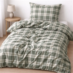 Framsidan »Sängkläder » Enkelt påslakanset » Enkelt påslakanset 140x200 cm Sängkläder 140x200 cm - 100% bomullsflanell - Høie of Scandinavia - Lukas Grön 100% bomullsflanell Spara25% Høie Of Scandinavia 799,00599,00SEKSpara 200,- I lager Trustpilot Välj storlek Välj alternativ Antal Lägg i varukorgen Se mer från: Høie Of Scandinavia Artikelnummer:8382-1 Läs vår sängklädsguide Se vårt stora utbud av lakan Se vårt stora utbud av täcken 140x200 Har du frågor om produkten? Varmt och mjukt påslakanset som känns behagligt mot hudenAndningsbart och mjukt material med hög komfortOtroligt mjuk och luddig yta Påslakan: 140x200 cm Örngott: 1 st. à 60x63 cm Material: 100% bomullsflanell Vävning: Extra fin 220TC (Thread count = antal trådar per kvadrattum) Färg: Grön Design: Lukas Grön Märke: Høie of Scandinavia Stängning: Påslakan med dragkedja, örngott med överlapp Tvätt: 60° Torktumlare: Ja Tål strykning: Ja Certifiering: Easy Care-behandlad, vilket innebär att den inte skrynklar efter tvätt. Certifiering: MADE IN GREEN by OEKO-TEX® (M2AMSTD86). Din garanti för att produkten är fri från hälsofarlig kemi. Rutat sänglinne i bomullsflanell från Høie Gör sängen extra inbjudande med detta mjuka och varma påslakanset i 100% bomullsflanell. Flanell-sängkläder är det självklara valet för dig som fryser om natten och önskar extra komfort och värme - särskilt under kalla nätter eller vinterhalvåret. Bomullsflanell framställs genom att borsta och göra bomullsfibrerna ludna, vilket ger en otroligt mjuk, luddig och varm yta. Den borstade strukturen skapar små luftfickor i tyget som effektivt hjälper till att behålla värmen, samtidigt som bomullen bibehåller sin naturliga andningsförmåga. Det ger en behaglig och balanserad nattsömn utan att kännas tung eller fuktig. Detta flanellpåslakanset har en trådtäthet på 220TC, vilket säkerställer en bra balans mellan slitstyrka, komfort och mjukhet. Materialet passar dig som ofta fryser om natten eller som vill ha ett extra varmt påslakanset under de kalla månaderna. Sänglinnenet är MADE IN GREEN by OEKO-TEX® certifierat, vilket är din garanti för att produkten är fri från hälsofarlig kemi. Det är också Easy Care-behandlat, vilket ger mindre skrynkling och bättre form efter tvätt. Easy Care gör ditt sänglinne extra mjukt och lätt att stryka. Bomullssatin-sänglinne är därför ett gott val för dig som vill ha extra komfort och en hotellkänsla hemma, men som ändå vill ha ett naturmaterial som är lätt att sköta och behagligt att sova i. Se alla våra sängkläder i flanell här Høie Of Scandinavia Høie of Scandinavia är ett välkänt skandinaviskt textilmärke som sedan 1850 har en lång historia, särskilt inom sänglinne, täcken och kuddar. Høie är känt för hög kvalitet, tidlös design och komfort - detta återspeglas i deras nordiska stil och funktionalitet. Høie kombinerar traditionellt hantverk med modern produktion och material för att skapa produkter som både är bekväma att sova i och hållbara i vardagen. Se hela utbudet av Høie här Tillbaka till Enkelt påslakanset 140x200 cm