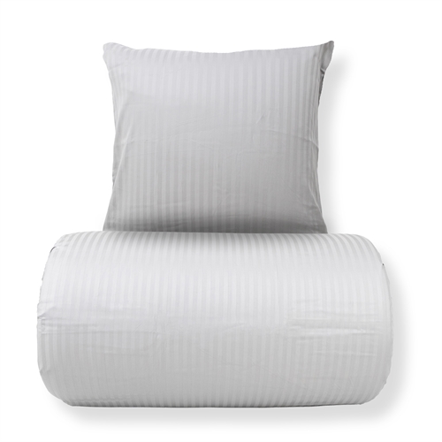 Skapa ett elegant och exklusivt uttryck i sovrummet med detta ljusgrå randiga sängset i 100% bomullssatin. Sängkläderna kombinerar klassisk design med hög komfort och är skapade för dig som vill ha både lyx och funktion i vardagen.