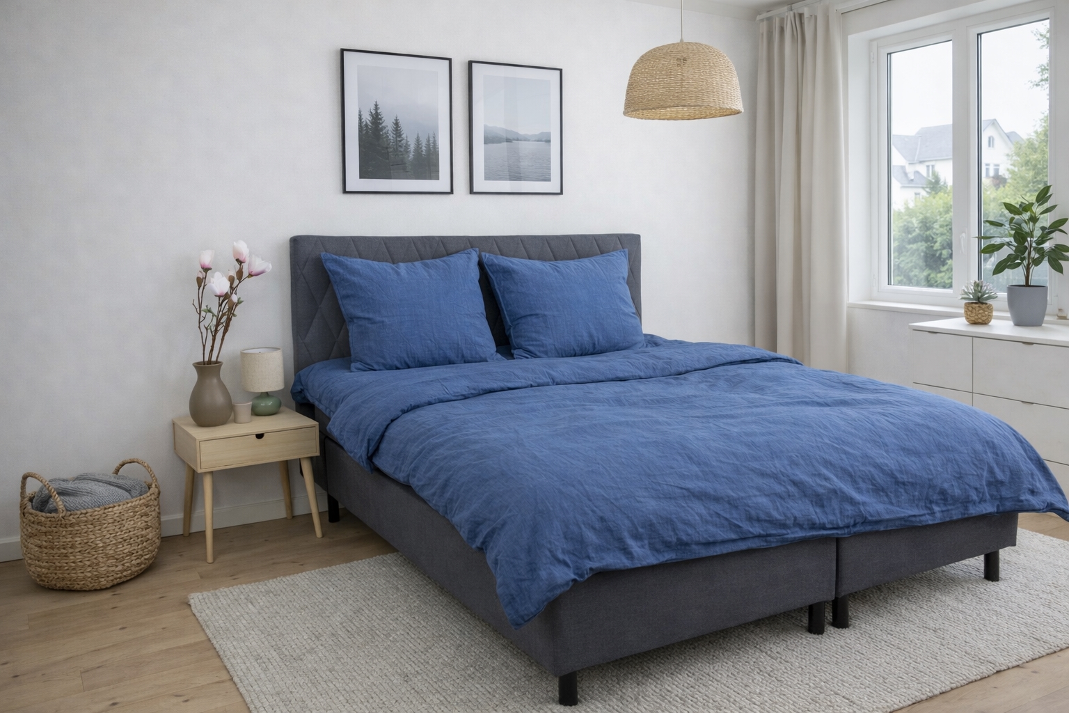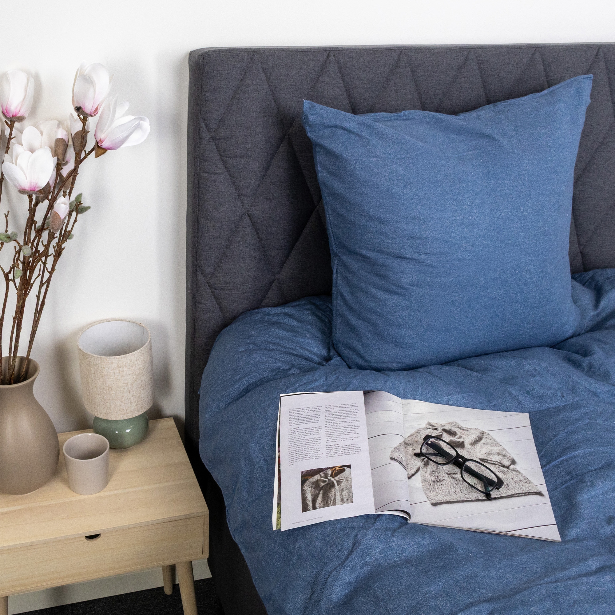 Påslakan och örngott stängs båda med dold dragkedja, vilket gör det enkelt att byta sängkläder och säkerställer att täcke och kudde håller sig på plats hela natten. Den blåmelerade färgen ger ett lugnt och naturligt uttryck som passar både moderna och klassiska sovrum.