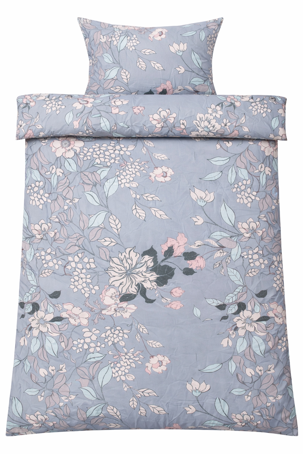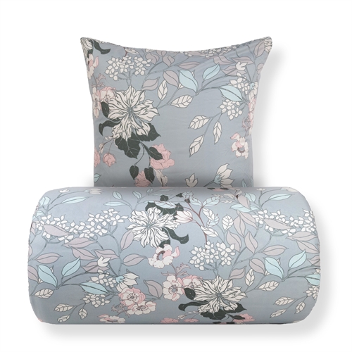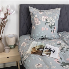 Både påslakan och örngott stängs med invändig dragkedja som säkerställer att täcket och kudden håller sig på plats och gör det enkelt att byta sängkläder. Det dammgröna blommönstret skapar ett lugnt och dekorativt uttryck som passar i både moderna och klassiska sovrum.