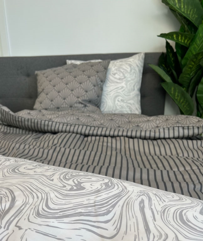 Framsidan »Sängkläder » Enkelt påslakanset » Enkelt påslakanset 150x210 cm (svenska mått) Sängkläder 150x210 cm - Vändbar design i 100% bomullssatin - Fan grå - Bäddset från By Night Spara59% Borg LivingBy Night 1.099,00449,00SEKSpara 650,- I lager Trustpilot Antal Lägg i varukorgen Se mer från: Borg Living Artikelnummer:492-3 Läs vår sängkläderguide Se vårt stora utbud av lakan Se vårt stora utbud av täcken 150x210 Har du frågor om produkten? KvalitetssängkläderExtra fin satinvävningMjuka och glänsande Påslakan: 150x210 cm Örngott: 1 st. á 50x60 cm MaterialSource: Glossary: 100 % fin bomullssatin Vävning: Extra fin 240TC satinvävning (Trådtäthet = antal trådar per kvadrattum) Färg: Grå Design: Fan Vändbar: - Framsida: Grafiskt mönster - Baksida: Ränder Varumärke: By Night Stängning: Påslakan och kuddfodral med dold YKK-dragkedja Tvätt: 60° Torktumling: Ja Tål strykning: Ja Certifiering: STANDARD 100 by OEKO-TEX® (2018OK0658) Sängkläder i 100 % tätt vävd bomullssatin. Detta bäddset från By Night är känt för sin vackra och släta yta som känns skön och mjuk mot huden. Fördelarna med bomullssatin är att det andas och håller dig behagligt sval på sommaren och varm på vintern, vilket gör sängkläderna perfekta året runt. Sänglinnet är dessutom 100 % genomfärgat, vilket innebär att färgen är bunden i bomullsfibrerna under produktionen. Detta resulterar i en otroligt hög färg- och tvättäkthet. Bäddsetet är OEKO-TEX®-certifierat. Certifieringen garanterar att produkten inte innehåller hälsoskadliga ämnen och att den är tillverkad under rättvisa förhållanden, så att du kan sova tryggt om natten. Samtidigt tar vi också väl hand om miljön. Vändbar design: Sängkläderna har en vändbar design, vilket innebär att båda sidorna är mönstrade eller färgade. Ett vändbart bäddset ger dig möjlighet att ändra utseendet genom att vända på det, samt möjlighet att matcha med olika dekorationer eller färger i sovrummet. Vändbar design – för en mer flexibel inredning! Bäddsetet är ett populärt val för dem som vill ha ett snyggt sängkläder med en vacker och stilren look. Täcke och kuddfodral stängs med dolt YKK-dragkedja. Köp enkelt matchande kuddfodral till dina extra kuddar här. Fräscha upp sängen och sovrummet med ett snyggt och läckert sängkläderset som detta. Utnyttja samtidigt möjligheten att säkerställa maximal sovkomfort genom att lägga till ett nytt, mjukt lakan av hög kvalitet. Du hittar vårt stora utbud av kvalitetslakan här By Night karaktäriseras av dansk design – de ger dig bekväma sovkomponenter för ditt nattmiljö i högsta kvalitet. By Night producerar sängkläder och lakan för hela familjen och lägger stor vikt vid aktuella trender, vilket gör att produktionen alltid involverar moderiktiga färger och mönster. Tillbaka till Enkelt påslakanset 150x210 cm (svenska mått)