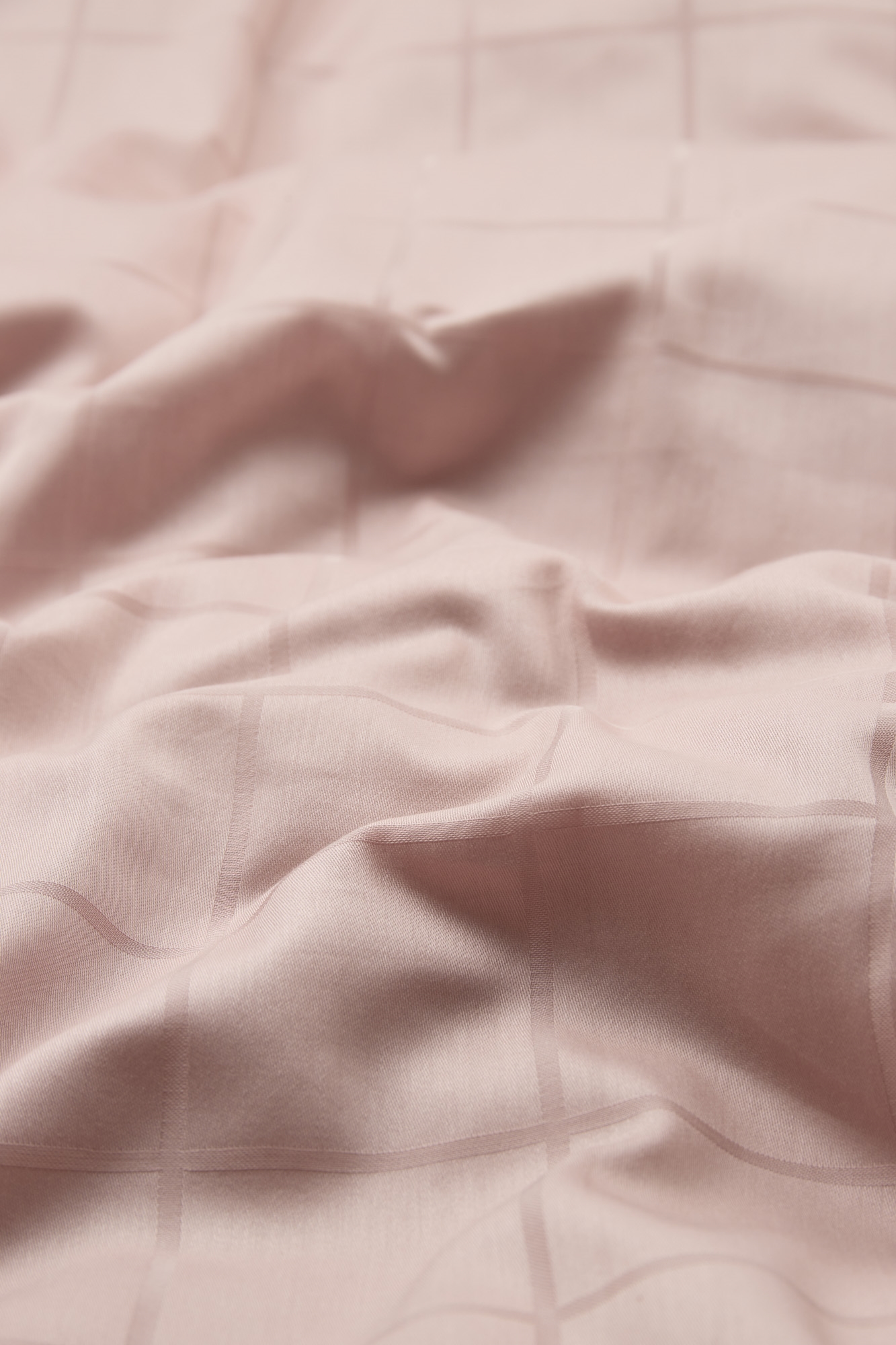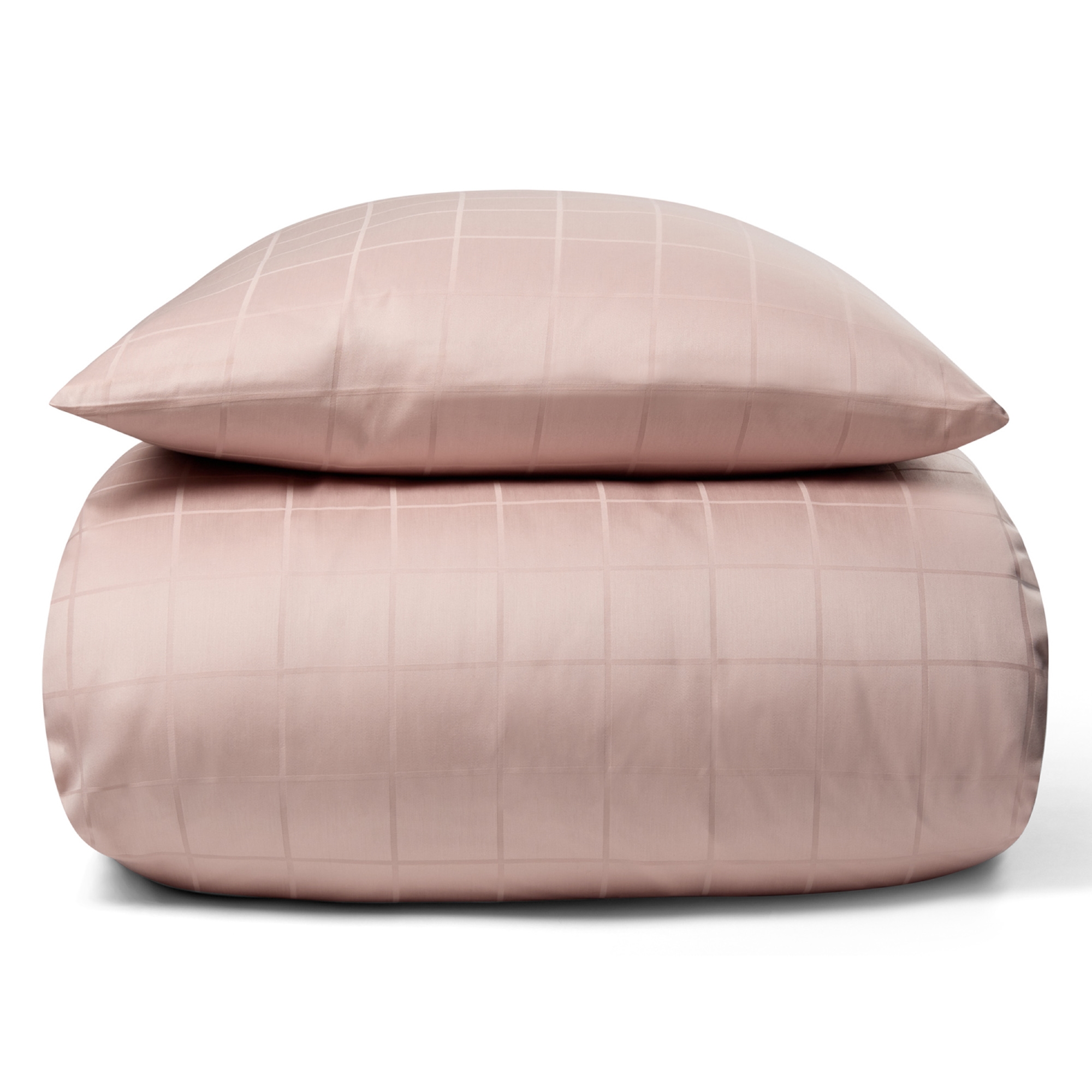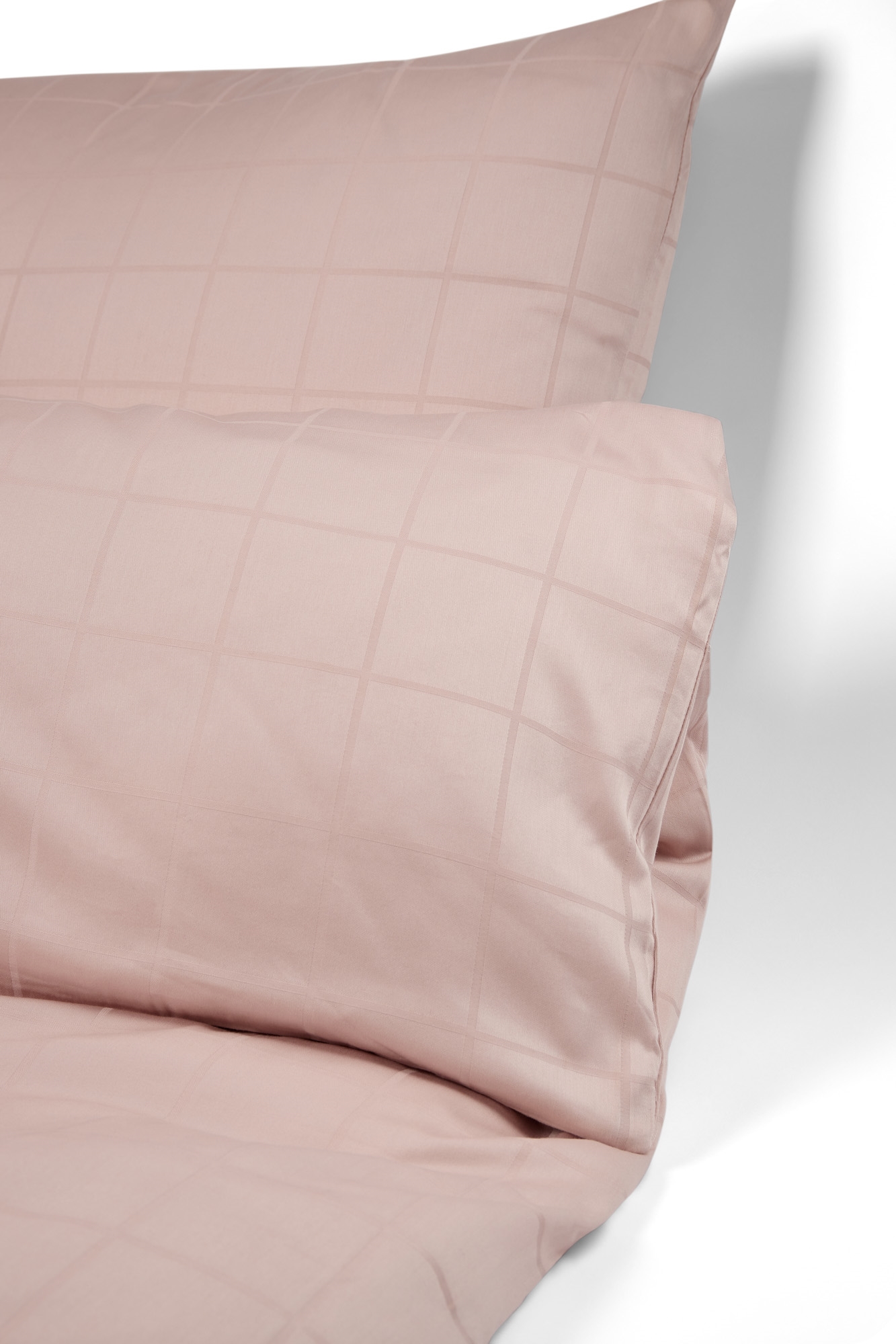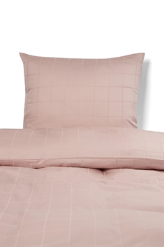 Jacquardväven kan ses i det rutiga mönstret på sängkläderna, som är vävt direkt in i tyget. När jacquardvävningen kombineras med bomullssatinens naturliga glans och mjukhet uppnås ett helt unikt bäddset av hög kvalitet med ett elegant uttryck. Dessutom är sängkläderna 100 % genomfärgade, vilket innebär att färgen binds i bomullsfibrerna under produktionen. Detta resulterar i en otroligt hög färg- och tvättbeständighet.