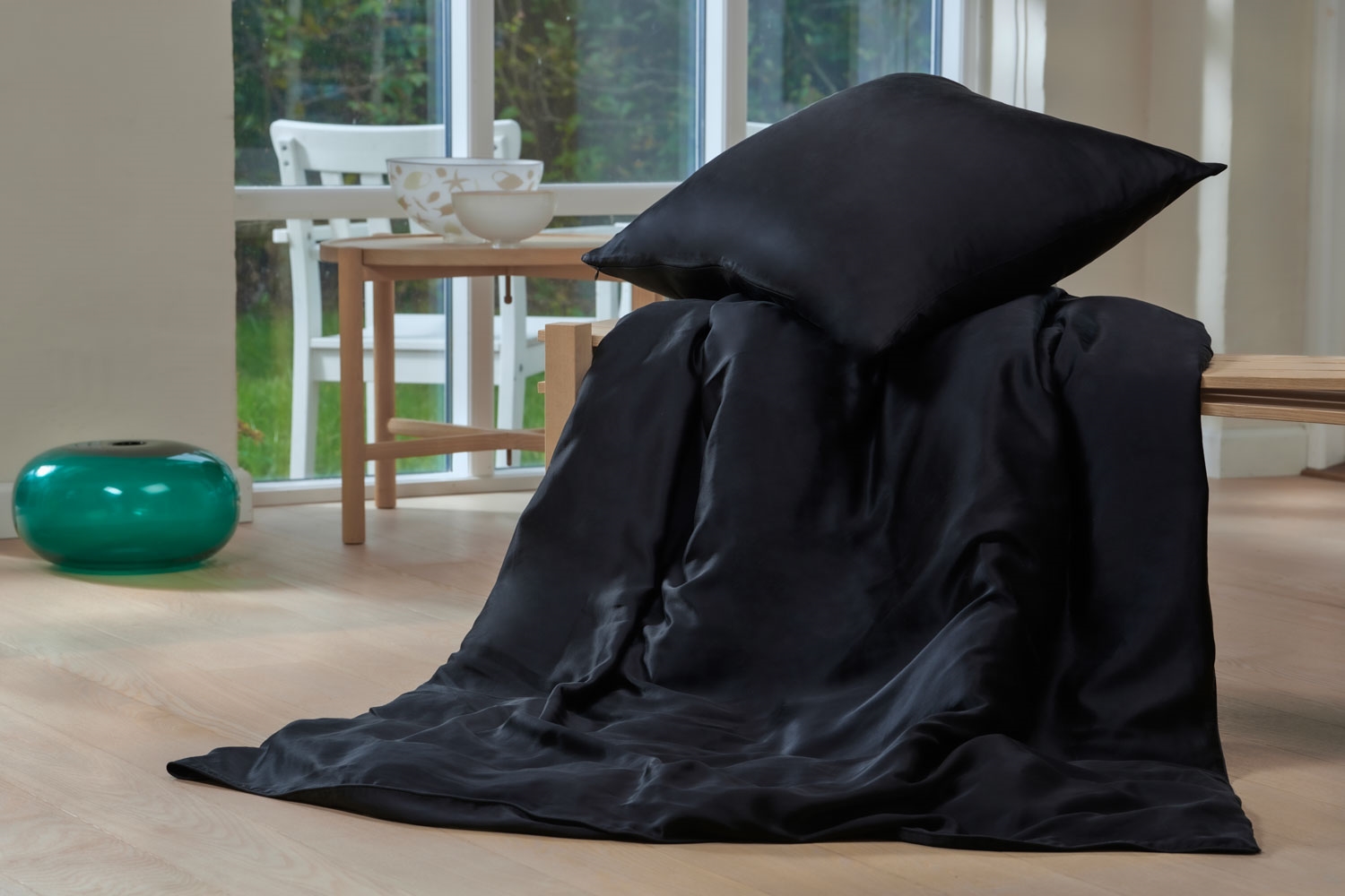 Framsidan »Sängkläder » Dubbelt påslakanset » Dubbelt påslakanset 200x200 cm Sängkläder 200x200 cm - Ensfärgade svarta sängkläder för dubbeltäcke - 100% silke - Butterfly Silk 2 x kuddfodralSpara26% Butterfly Silk 5.799,004.299,00SEKSpara 1.500,- Fri frakt på denna varaFåtal i lager Trustpilot Antal Lägg i varukorgen Se mer från: Butterfly Silk Artikelnummer:4001144 Läs vår sängkläderguide Se vårt stora utbud av lakan Se vårt stora utbud av täcken 200x200 Har du frågor om produkten? Sängkläder - 200x200 cm100% mullbärssilkeExklusivt mjukt bäddset Påslakan: 200x200 cm Örngott: 2 st. á 60x63 cm Material: 100% silke Vävning: Silke med 19 momme satinvävning Färg: Svart Design: Ensfärgad Varumärke: Butterfly Silk Stängning: Täcke och kuddfodral med dragkedja Tvätt: 30° (Viktigt att använda enzymfritt tvättmedel) Torktumling: Nej Strykning: Nej Certificering: STANDARD 100 by OEKO-TEX® (1176-194DTI) Sängkläder i silke från Butterfly Silk är tillverkade av det finaste mullbärssilke, med en stark kvalitet i silkesatin och en hög momme på 19. Om du saknar den där extra lyxen i sovrummet, rekommenderar vi ett sängsätt i silke. Det är perfekt för dig som vill ha bästa möjliga komfort, välbefinnande och en ren känsla av njutning. Sängkläderna är i en snygg och elegant svart färg, vilket ger hemmet en exklusiv lyxhotellkänsla. Sängkläder i silke anpassar sig efter kroppens temperatur, är fuktabsorberande, antibakteriella och allergivänliga. Det passar väldigt bra för lockigt hår och känslig hud tack vare den mjuka och släta ytan. Köp lätta kuddfodral till dina extra kuddar här Sängkläder i silke kan tvättas i 30° skonsam tvätt med enzymfritt tvättmedel, och bör tvättas separat. Det är ett fint och lätt sängsätt som inte tål torktumling, utan måste lufttorkas. Tänk på att alltid vända det ut och in och stänga dragkedjan för bästa möjliga vård. Du hittar vårt stora utbud av kvalitetslakan här, inklusive de underbara lakan i silke Tillbaka till Dubbelt påslakanset 200x200 cm