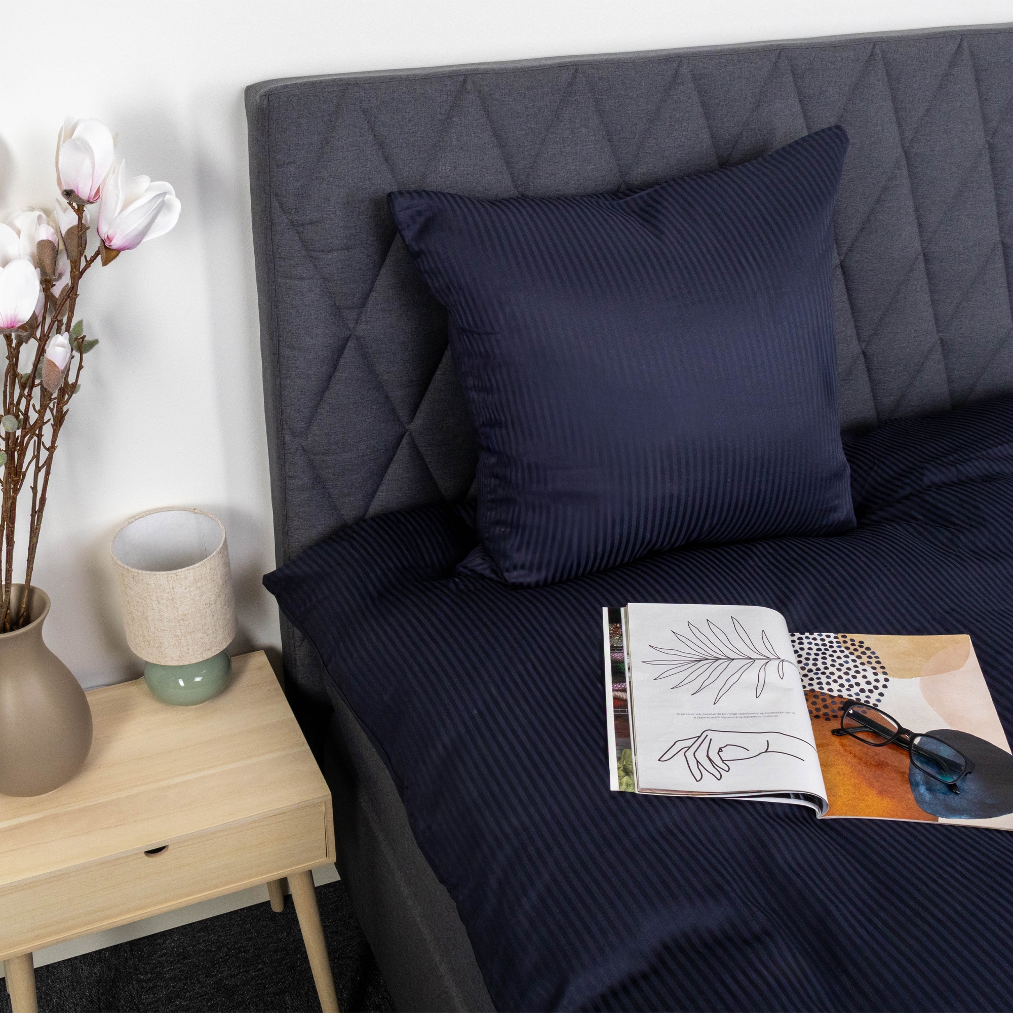Framsidan »Sängkläder » Enkelt påslakanset » Enkelt påslakanset 150x210 cm (svenska mått) Sängkläder i 100% egyptisk bomull - 150x210 cm - Mörkblå sängkläder - Extra mjukt bäddset från By Borg Spara44% By Borg 1.799,00999,00SEKSpara 800,- Fri frakt på denna varaI lager Trustpilot Välj storlek Välj alternativ Antal Lägg i varukorgen Se mer från: By Borg Artikelnummer:92-3 Läs vår sängkläderguide Se vårt stora utbud av lakan Se vårt stora utbud av täcken 150x210 Har du frågor om produkten? 100% egyptisk bomullssatinLyxiga sängkläder i bästa kvalitetFinaste och mjukaste vävning Påslakan 150x210 cm Örngott: 1 st. á 50x60 cm Material: 100% egyptisk bomullssatin Vävning: Extra fin 400 TC satinväv (Trådtäthet = antal trådar per kvadrattum) Färg: Mörkblå Design: Jacquardvävda ränder Varumärke: Excellent By Borg Stängning: Påslakan och kuddfodral med dragkedja Tvätt: 60° Torktumling: Ja Strykning: Ja Certifiering: STANDARD 100 by OEKO-TEX® (11-47542) Egyptisk bomull är ett av de finaste och mest lyxiga materialen som används till sängkläder. Kvaliteten på sängkläder tillverkade av egyptisk bomull beror främst på den typ av bomull som odlas i Egypten, samt den noggranna vävningsprocessen. Egyptisk bomull kommer främst från växten Gossypium barbadense, som är känd för att producera långa och tunna fibrer. De långa fibrerna bidrar till sängklädernas styrka och jämnhet. 100 % egyptisk bomullssatin är ofta kända för sin höga trådtäthet. Trådtäthet avser antal trådar per kvadrattum. Hög trådtäthet bidrar till hållbarhet och en slätare yta. Trots den täta väven är sängkläder i egyptisk bomull kända för att andas, vilket hjälper till att reglera kroppsvärmen. Sängkläderna har också bra fuktupptagningsförmåga, vilket håller sängen torr och bekväm. Sängkläderi egyptisk bomull är kända för sin höga kvalitet , mjukhet, glans och hållbarhet, vilket gör dem till ett populärt och eftertraktat val för dig som letar efter lyxiga sängprodukter. Bäddsetet stängs med en dold dragkedja i både påslakan och kuddfodral. Köp enkelt matchandekuddfodral till dina extra kuddar här. Fräscha upp sängen och sovrummet med ett stiligt och läckert set sängkläder som detta. Utnyttja också möjligheten att säkerställa maximal sovkomfort genom att lägga till ett nytt, mjukt lakan av hög kvalitet. Du hittar vårt stora utbud av kvalitetslakan här. Excellent By Borgpresenterar ett bäddset tillverkat av 100 % egyptisk bomull, jacquardvävt i en klassisk och tidlös design. Ett lyxigt sängkläder som inte bara är ett nöje för ögat, utan också för kroppen. Excellent By Borg fokuserar på komfort och sömnoptimering med sina danskproducerade täcken, kuddar och sängkläder. De vet att källan till en bra vardag och hög livskvalitet är kopplad till en optimal och god nattsömn. Därför har de gjort det enkelt för dig att hitta rätt sovkomponenter som passar just dina behov. Produkterna i denna serie erbjuder extremt hög kvalitet och noggrann certifiering. Tillbaka till Enkelt påslakanset 150x210 cm (svenska mått)