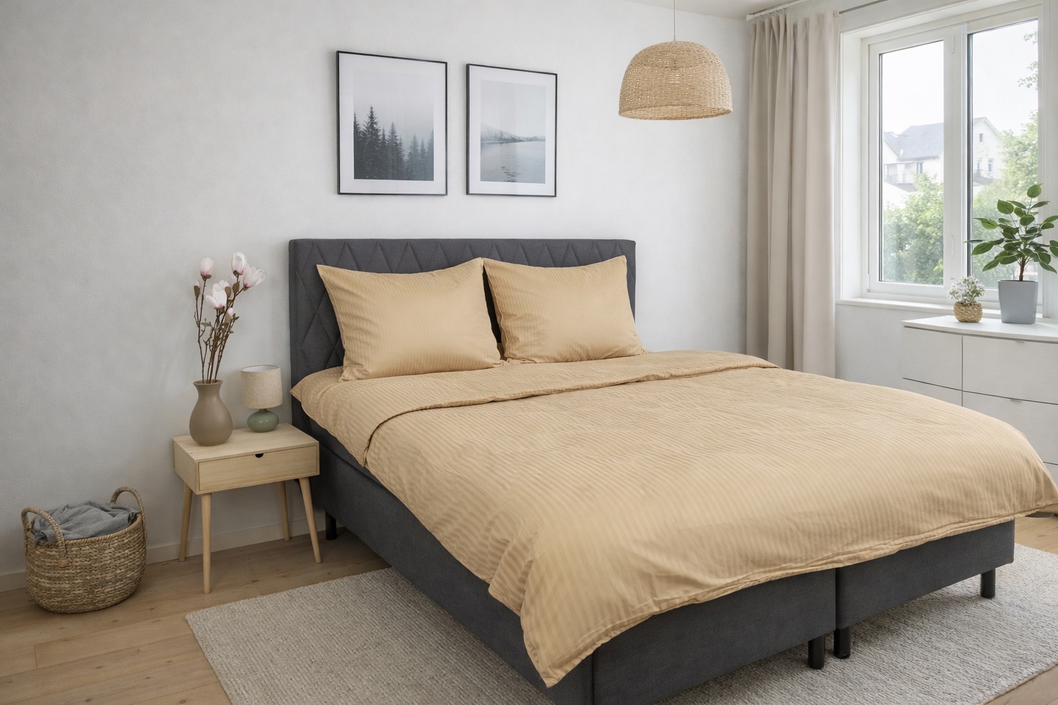 Framsidan »Sängkläder » Enkelt påslakanset » Extra långa sängkläder 140x220 cm Sängkläder i 100% egyptisk bomull - 140x220 cm - Beiga sängkläder - Extra mjukt bäddset från By Borg Spara44% By Borg 1.799,00999,00SEKSpara 800,- Fri frakt på denna varaI lager Trustpilot Välj storlek Välj alternativ Antal Lägg i varukorgen Se mer från: By Borg Artikelnummer:97-2 Läs vår sängkläderguide Se vårt stora utbud av lakan Se vårt stora utbud av täcken 140x220 Har du frågor om produkten? 100% egyptisk bomullssatinLyxiga sängkläder i bästa kvalitetFinaste och mjukaste vävning Påslakan: 140x220 cm Örngott: 1 st. á 60x63 cm Material: 100% egyptisk bomullssatin Vävning: Extra fin 400 TC satinvävning (Trådtäthet = antal trådar per kvadrattum) Färg: Beige Design: Jacquardvävda ränder Varumärke: Excellent By Borg Stängning: Täcke och kuddfodral med dragkedja Tvätt: 60° Torktumling: Ja Tål strykning: Ja Certifiering: STANDARD 100 by OEKO-TEX® (11-47542) Egyptisk bomull är ett av de finaste och mest lyxiga materialen som används för sängkläder. Kvaliteten på sängkläder gjorda av egyptisk bomull beror främst på den typ av bomull som odlas i Egypten och den noggranna vävningsprocessen. Egyptisk bomull kommer framförallt från Gossypium barbadense-plantan, som är känd för att producera långa och tunna fibrer. De långa fibrerna bidrar till styrka och släthet i sängkläderna. Sängkläder i 100 % egyptisk bomullssatin är ofta kända för sin höga trådtäthet. Trådtäthet avser antalet trådar per kvadrattum. Hög trådtäthet bidrar till hållbarhet och en slätare yta. Trots den täta vävningen är sängkläder i egyptisk bomull kända för att vara andningsbara, vilket hjälper till att reglera kroppstemperaturen. Sängkläderna har också god fuktabsorberingsförmåga, vilket håller sängen torr och bekväm. Sammanfattningsvis är sängkläder i egyptisk bomull kända för sin höga kvalitet, mjukhet, glans och hållbarhet, vilket gör dem till ett populärt och eftertraktat val för den som söker lyxiga sängprodukter. Bäddsetet stängs med en dold dragkedja i både täcke och kuddfodral. Köp enkelt matchande kuddfodral till dina extra kuddar här. Fräscha upp sängen och sovrummet med en snygg och läcker uppsättning sängkläder som detta. Ta tillfället i akt att säkerställa maximal sovkomfort genom att addera ett nytt, mjukt, kvalitetslakan. Du hittar vårt stora utbud av lakan här Excellent By Borg presenterar ett bäddset tillverkat av 100% egyptisk bomull, jacquardvävd i en klassisk och tidlös design. Ett lyxigt sängkläder som inte bara är ett nöje för ögat utan också för kroppen. Excellent By Borg fokuserar på komfort och sömnoptimering med sina danskproducerade täcken, kuddar och sängkläder. De vet att källan till en bra vardag och hög livskvalitet är kopplad till en optimal och god nattsömn. Därför har de gjort det enkelt för dig att hitta rätt sovkomponenter som passar just dina behov. Produkterna i den här serien ger dig extremt hög kvalitet och noggrann certifiering. Tillbaka till Extra långa sängkläder 140x220 cm