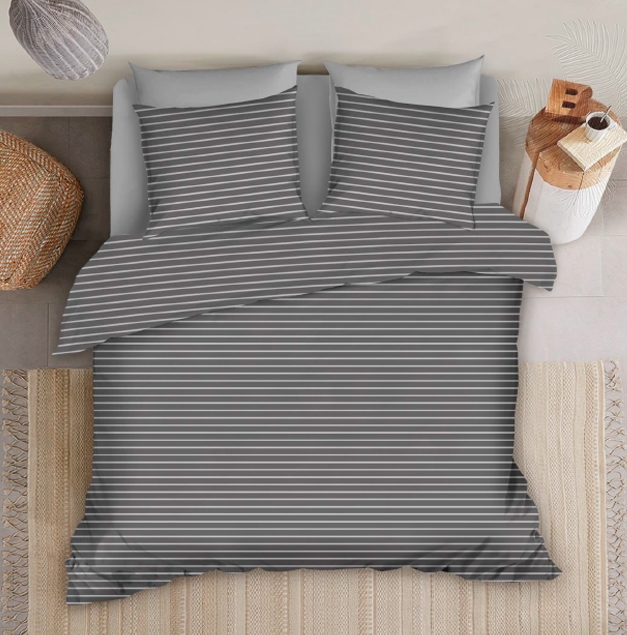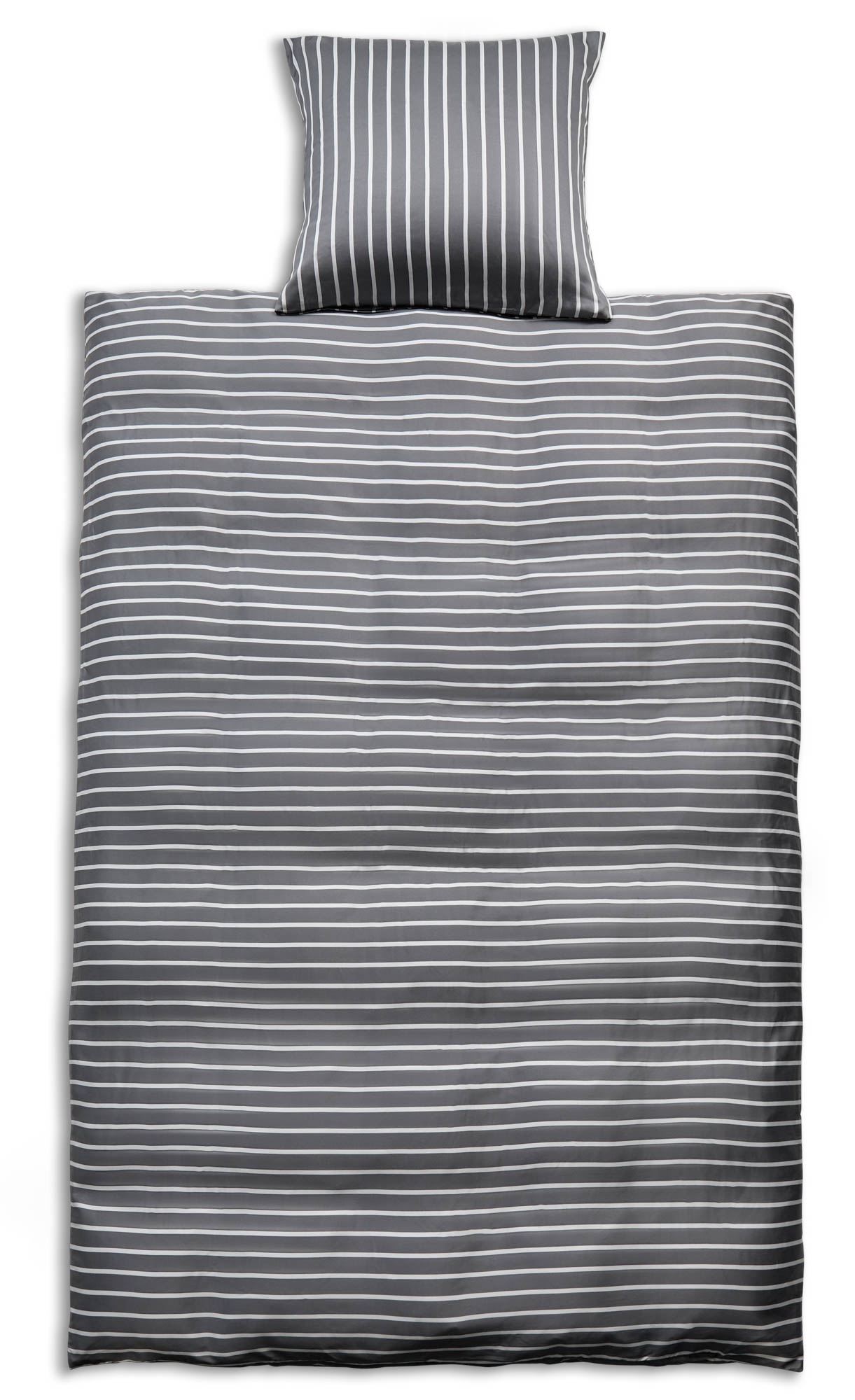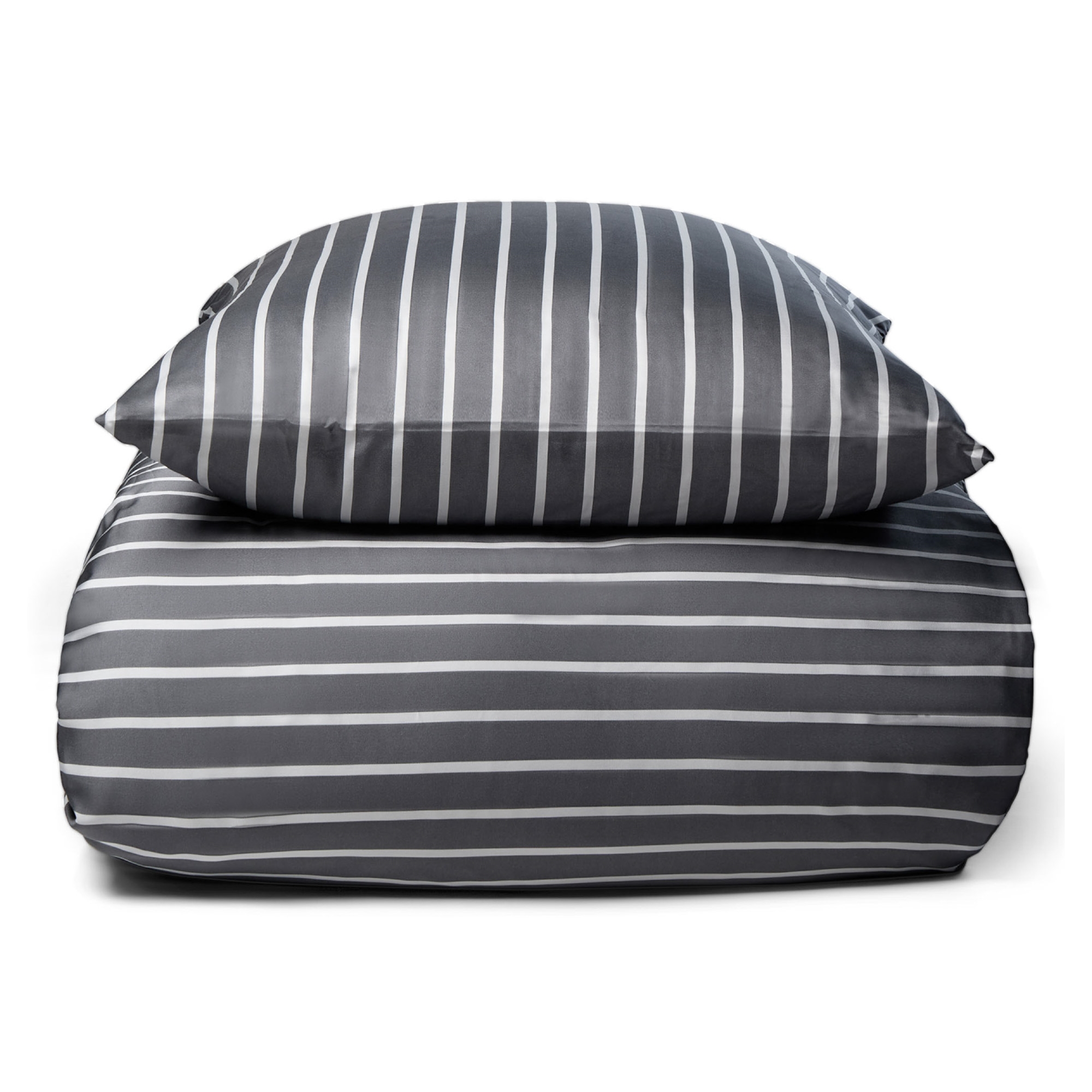 Sängkläder i bambu - 100% naturlig bambu - 140x220 cm - Randig grå - Satinvävt bäddset