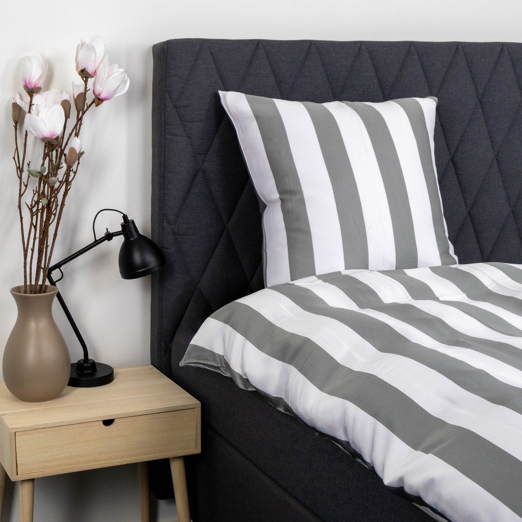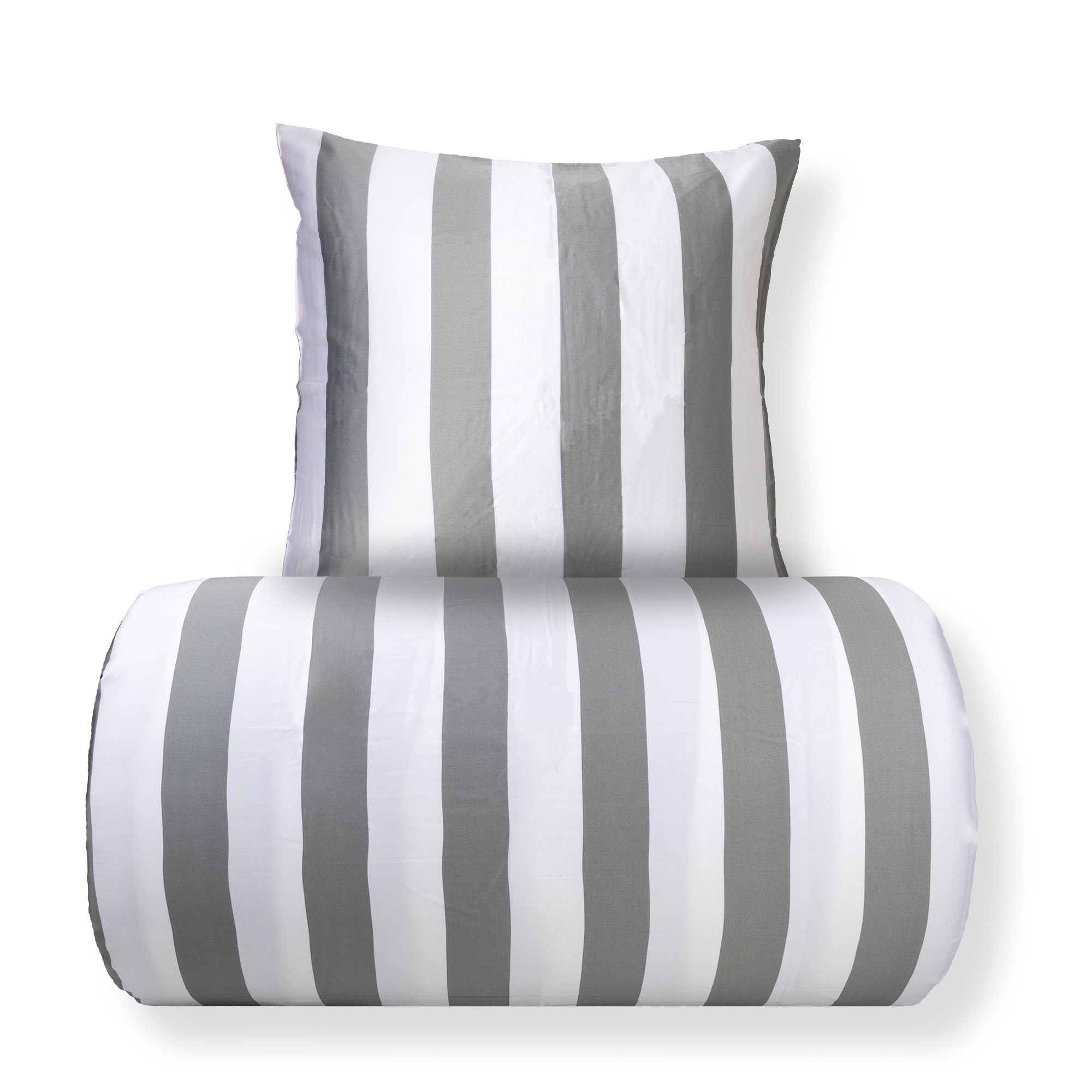 Sängkläder i bambu - 100 % naturlig bambu - 140x200 cm - Grå breda ränder - Satinvävt sängset
