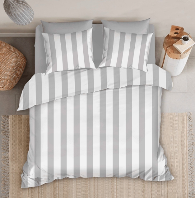 Sängkläder i bambu - 100% naturlig bambu - 140x220 cm - Grå breda ränder - Satinvävt sängset