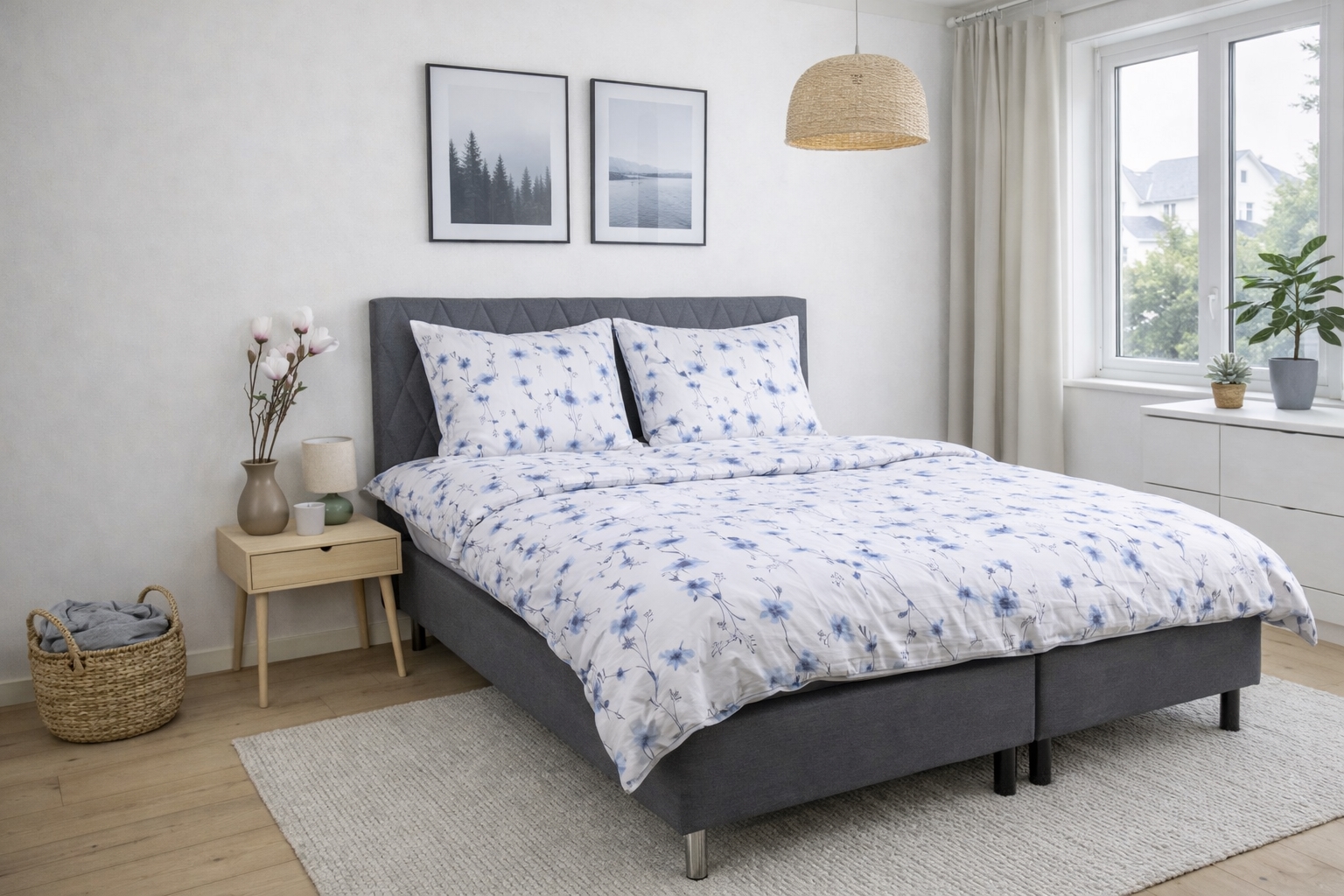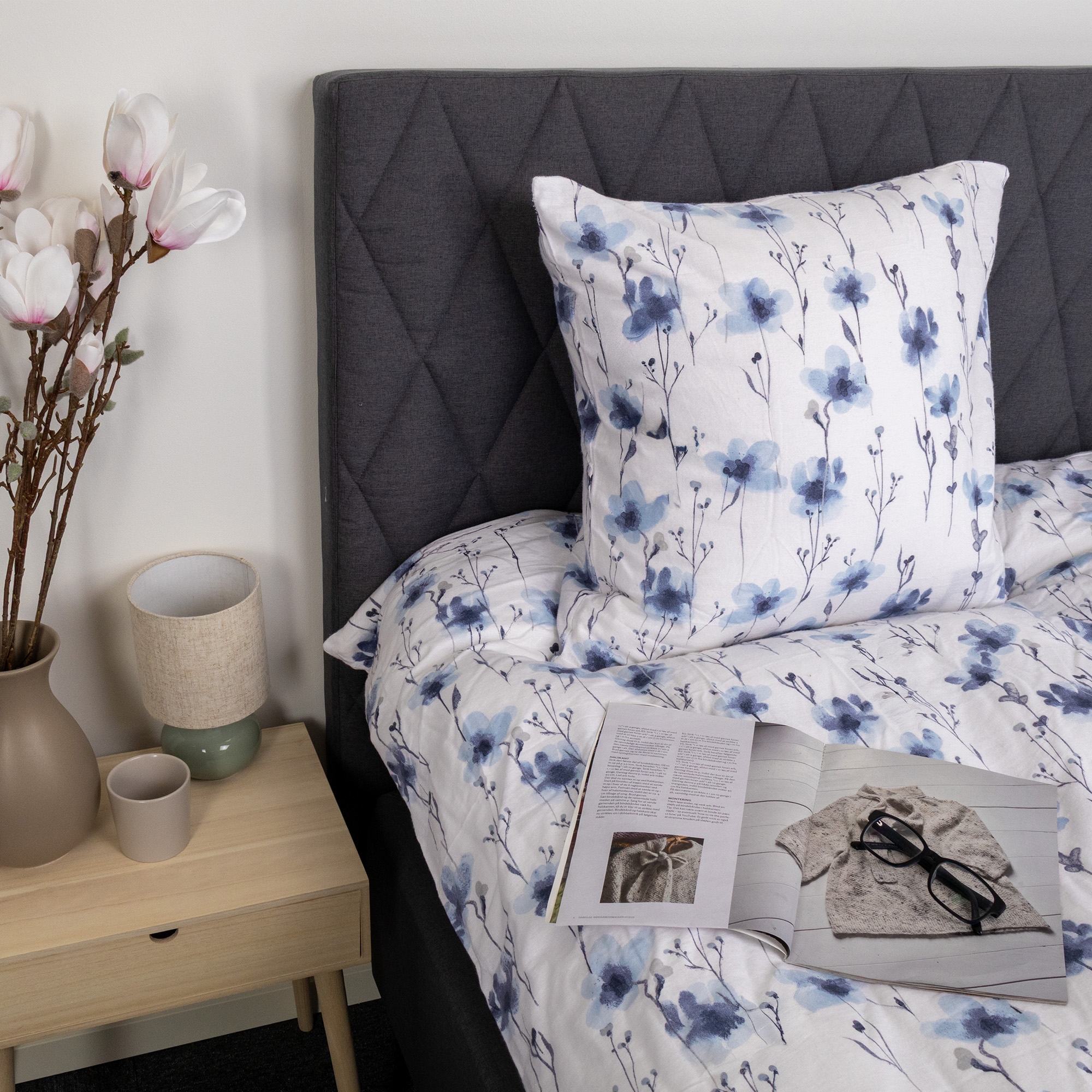 Framsidan »Sängkläder Sängkläder i flanell 140x200 cm - Vit med blå blommor Spara44% By Night 799,00449,00SEKSpara 350,- I lager Trustpilot Välj storlek Välj alternativ Antal Lägg i varukorgen Se mer från: By Night Artikelnummer:260-1 Har du frågor om produkten? Varmt och mysigt påslakanset som känns behagligt mot hudenAndningsbart och mjukt material med hög komfortOtroligt mjuk och plyschig yta Påslakan: 140x200 cm Örngott: 1 st. á 60x63 cm Material: 100% bomullsflanell Vävning: 200TC (Thread count = antal trådar per kvadrattum) Färg: Vit med blå blommor Design: Flower Blue Märke: By Night Stängning: Påslakan och örngott med invändig dragkedja Tvätt: 60° Torktumling: Ja Tål strykning: Ja Certifiering: STANDARD 100 by OEKO-TEX® (20182KO658). Din garanti för att produkten är fri från hälsofarlig kemi. Bomullsflanell sängkläder med blommor - extra mjuka och varma Skapa en mysig och inbjudande atmosfär i sovrummet med detta blommiga flanellsängset i vitt med blå detaljer. Den mjuka bomullsflanellen ger en varm och behaglig komfort - perfekt för kyliga nätter. Sängklädet är tillverkat i 100% bomullsflanell med en tät 200TC vävning. Flanell har som kännetecken att bomullsfiberna ruggas och borstas på ytan. Denna behandling skapar den karaktäristiska, plyschiga mjuka strukturen som gör flanellsängkläder extra behagliga att ligga i. Den borstade ytan binder värmen närmare kroppen och ger en skön, varm känsla utan att materialet förlorar sin naturliga andningsförmåga. Bomullsflanell är därför ett givet val för dig som ofta fryser på natten eller vill ha varmare sängkläder under höst- och vintermånaderna. Samtidigt är materialet slitstarkt och håller sig mjukt tvätt efter tvätt. Det blommiga designen kombinerar vackra blå blommor med en ljus bakgrund, vilket skapar ett lugnt och harmoniskt uttryck i sovrummet. Ett blommigt sängkläde som både känns varmt och ser elegant ut. Påslakan och örngott stängs med invändig dragkedja, vilket ger en snygg och praktisk avslutning. Sängklädet är certifierat enligt STANDARD 100 by OEKO-TEX, vilket är din garanti för att produkten är testad och fri från hälsofarlig kemi. Det kan tvättas i 60 grader och tål både torktumling och strykning. Se alla våra sängkläder i flanell här By Night By Night som är producerat av Borg Design karaktäriseras av dansk design - de ger dig bekväma produkter för din sömn i högsta kvalitet. By Night producerar sängkläder och lakan för hela familjen och lägger stor vikt vid aktuella trender, så att produktionen alltid innefattar moderiktiga färger och designer. Se hela utbudet från By Night här Tillbaka till Sängkläder