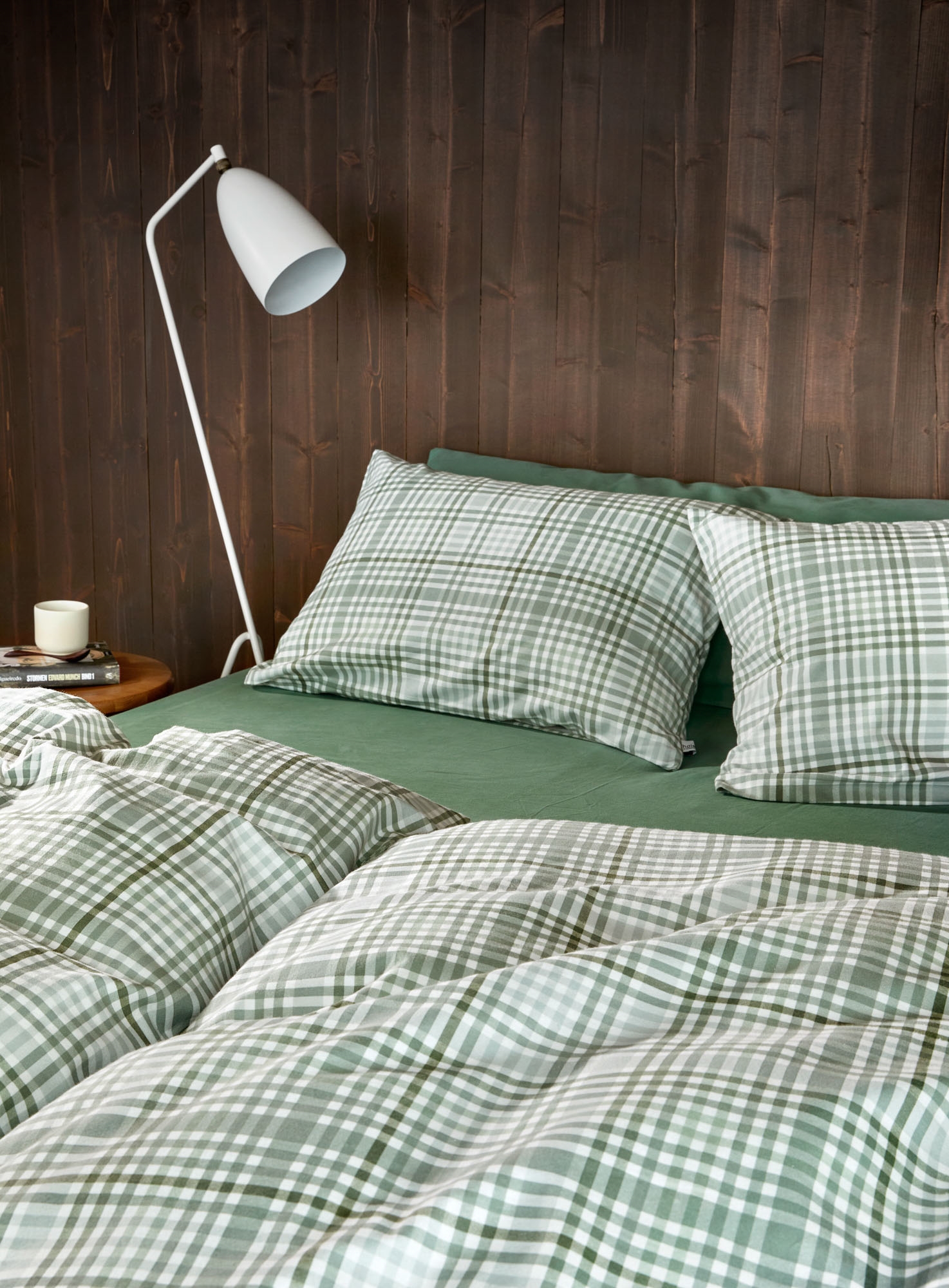 Framsidan »Sängkläder » Enkelt påslakanset » Extra långa sängkläder 140x220 cm Sengetøy av flanell - 140x220 cm - 100% mjukt bomullsflanell sengesett - Høie of Scandinavia - David grønn Spara30% Høie Of Scandinavia 999,00699,00SEKSpara 300,- Fåtal i lager Trustpilot Antal Lägg i varukorgen Se mer från: Høie Of Scandinavia Artikelnummer:7719-2 Les vår sengetøyguide Se vårt store utvalg av formsytt lakan Se vårt store utvalg av dyner 140x220 Har du frågor om produkten? 100% Bomullsflanell - Ekstra mjukt GREEN by OEKO-TEX sertifisertEasy Care behandlet - Så det ikke krøller Dynebetræk: 140x220 cm Pudebetræk: 1 stk. á 60x63 cm Materiale: 100% bomullsflanell Vævning: 220TC (Thread count = antall tråder per kvadrattomme) Farge: Grønn Design: David Brand: Høie of Scandinavia Lukning: Dynebetræk med glidelås, pudebetræk med overlapp Vask: 60° Tørretumbling: Ja Tåler strykning: Ja Sertifisering: GREEN by STANDARD 100 by OEKO-TEX® (M27M47FP6 HOHENSTEIN HTTI) Sertifisering: EASY CARE behandlet, som betyr at det ikke krøller etter vask Mjukt 100% bomullsflanell sengetøy Sengetøy av flanell får sin særlige mjukhet ved å børste overflaten av den ekstra fine bomullen, slik at det fremstår som lett oppkradset bomull med en lodden overflate, noe som skaper en varm og mjuk følelse mot huden og føles deilig varmt og mjukt å ligge med. Skap en koselig stemning i soverommet med Høie of Scandinavia sengesett i 100% bomullsflanell. Det klassiske designet i den vakre fargen vil være det perfekte valget for å skape avslapning og hygge. Et 100% bomullsflanell sengesett er den perfekte gave til en du er glad i eller som en luksuriøs tillegg til hjemmet eller sommerhuset. Kombiner med overmadrasslaken og ekstra puter i matchende farge, hvis du ønsker den ultimate mjuke følelsen. Sertifiseringer Sengetøyet er OEKO-TEX sertifisert. Det er din garanti for at sengetøyet er testet og fritt for skadelige stoffer, dessuten er sengetøyet allergivennlig. Høie sengetøy er også Easy Care behandlet, for mindre krøll og bedre fasong etter vask. Easy Care gjør ditt sengetøy ekstra komfortabelt og lett å stryke. Kjøp lett pudebetræk til dine ekstra puter her Frisk opp sengen og soverommet med et flott og lekkert sett sengetøy som dette. Benytt samtidig muligheten for å sikre deg maksimal sovekomfort, ved å tilføre et nytt mjukt formsytt lakan av høy kvalitet. Du finner vårt store sortiment av kvalitets formsytt lakan her Høie er et skandinavisk merke som står for tradisjon forent med nytenkning. Firmaet har eksistert siden 1850 og har gjennom årene vært med på å forme og utvikle skandinavisk tekstil og design. Sengetøy fra Høie er hverdagsluksus som alle fortjener. Tillbaka till Extra långa sängkläder 140x220 cm