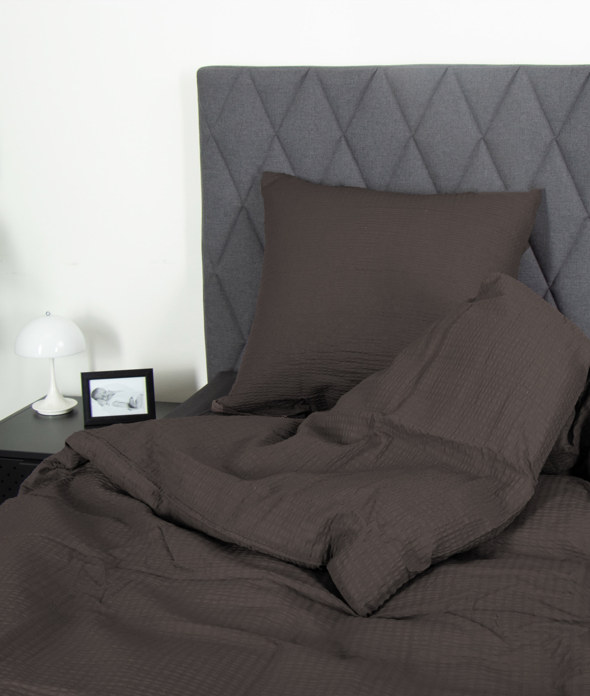 Framsidan »Sängkläder Sängkläder till dubbeltäcke 200x220 cm - Grå sängkläder i bäckebölja - By Night sängkläder i bomullscrepe 2 x kuddfodralSpara31% By Night 1.299,00899,00SEKSpara 400,- Fåtal i lager Trustpilot Antal Lägg i varukorgen Se mer från: By Night Artikelnummer:268-5 Läs vår sängkläderguide Se vårt stora utbud av lakan Se vårt stora utbud av täcken 200x220 Har du frågor om produkten? Sängkläder - 200x220 cm100% bomullscrepeBäckebölja - Grå Påslakan: 200x220 cm Örngott: 2 st. á 60x63 cm Material: 100% bäckebölja - bomullscrepe Vävning: 200 TC (Trådtäthet = antal trådar per kvadrattum) Färg: Grå Design: Enfärgad Varumärke: By Night Stängning: Påslakan och kuddfodral med dragkedja Tvätt: 60° Torktumling: Ja Tål strykning: Ja Certifiering: STANDARD 100 by OEKO-TEX® (2018OK0658) Sängkläder i bäckebölja, även kallat bomullscrepe, är ett slätt vävt bomullstyg med påsydd rynkeffekt, vilket ger sängkläderna ett snyggt utseende som inte kan tvättas bort. "By Night" sängkläder i bäckebölja är gjorda av 100% bomull. Bäddsetet är färgäkta vilket innebär att det behåller färgen efter upprepade tvättar. Köp lätta kuddfodral till dina extra kuddar här Fräscha upp sängen och sovrummet med ett vackert och lyxigt sängklädesset som detta. Passa samtidigt på att maximera din sovkomfort genom att lägga till ett nytt mjuktmjukt lakan av hög kvalitet. Du hittar vårt stora sortiment av kvalitetslakan här By Night är kända för sin danska design och levererar bekväma sovkomponenter av högsta kvalitet. By Night tillverkar sängkläder och lakan för hela familjen med stor vikt på aktuella trender, vilket innebär att deras produkter alltid omfattar moderiktiga färger och mönster. Tillbaka till Sängkläder