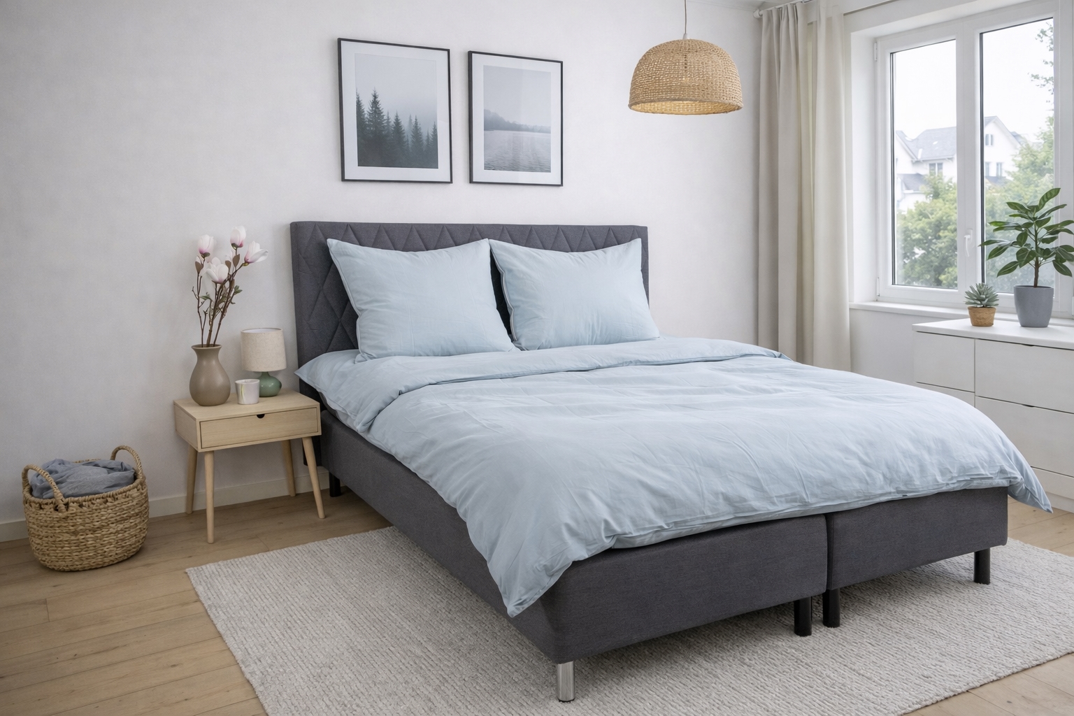Sängsetet är tillverkat i mjuk mikrofiber med en fin 150TC vävning. Mikrofiber är känt för sina extra fina fibrer, vilket gör materialet både lätt, smidigt och behagligt mot huden. Ytan känns slät och mjuk, samtidigt som tyget är slitstarkt och håller sig fint tvätt efter tvätt.