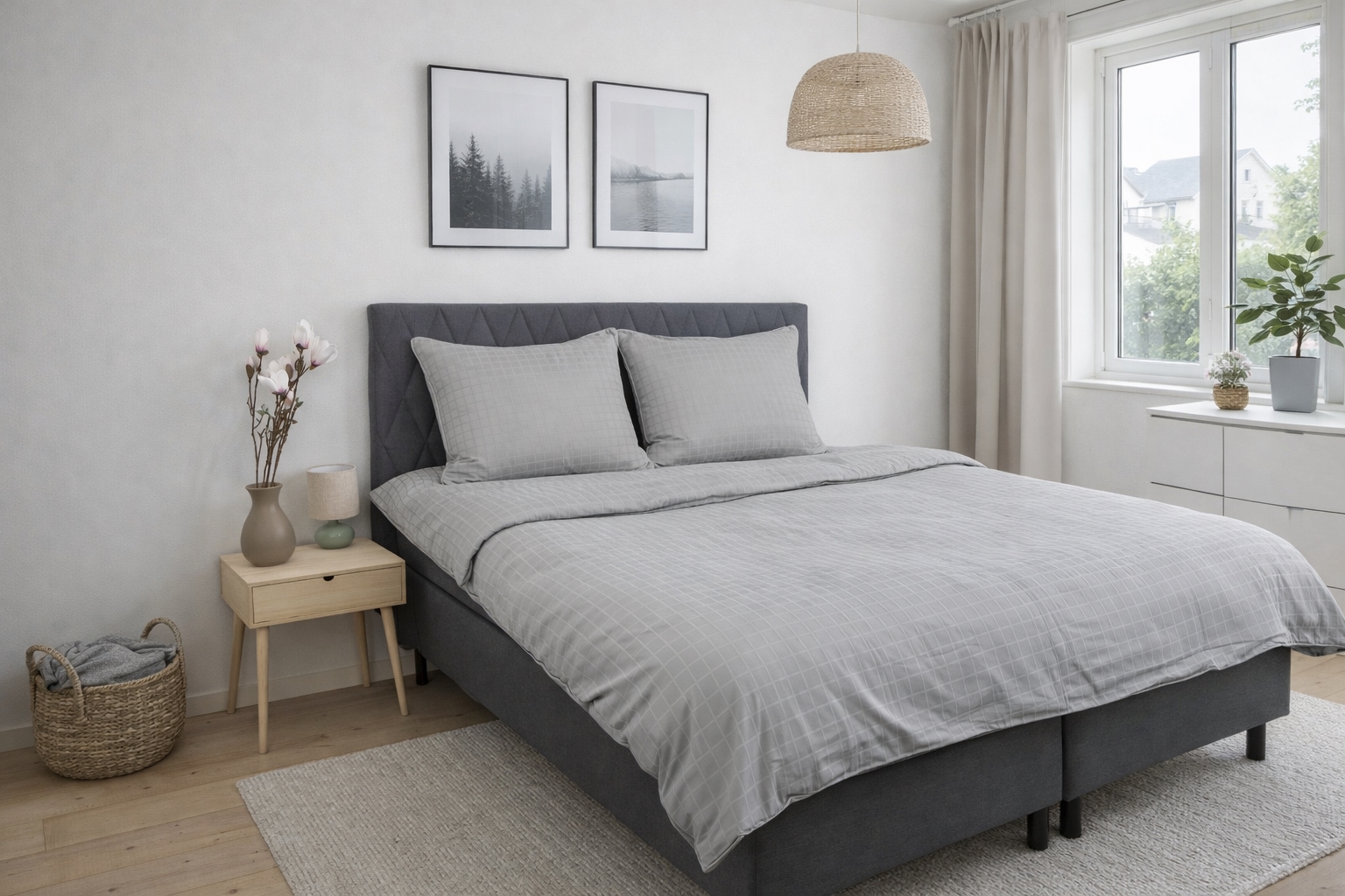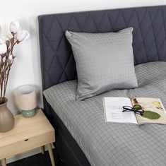 Det jacquardvävda rutmönstret är vävt direkt i tyget och skapar struktur och djup utan tryck. Denna vävmetod säkerställer att mönstret behåller sitt uttryck tvätt efter tvätt och ger sängkläderna ett exklusivt och genomfört utseende. Den grå färgen understryker det lugna uttrycket och passar lätt in i både moderna och klassiska sovrum.
