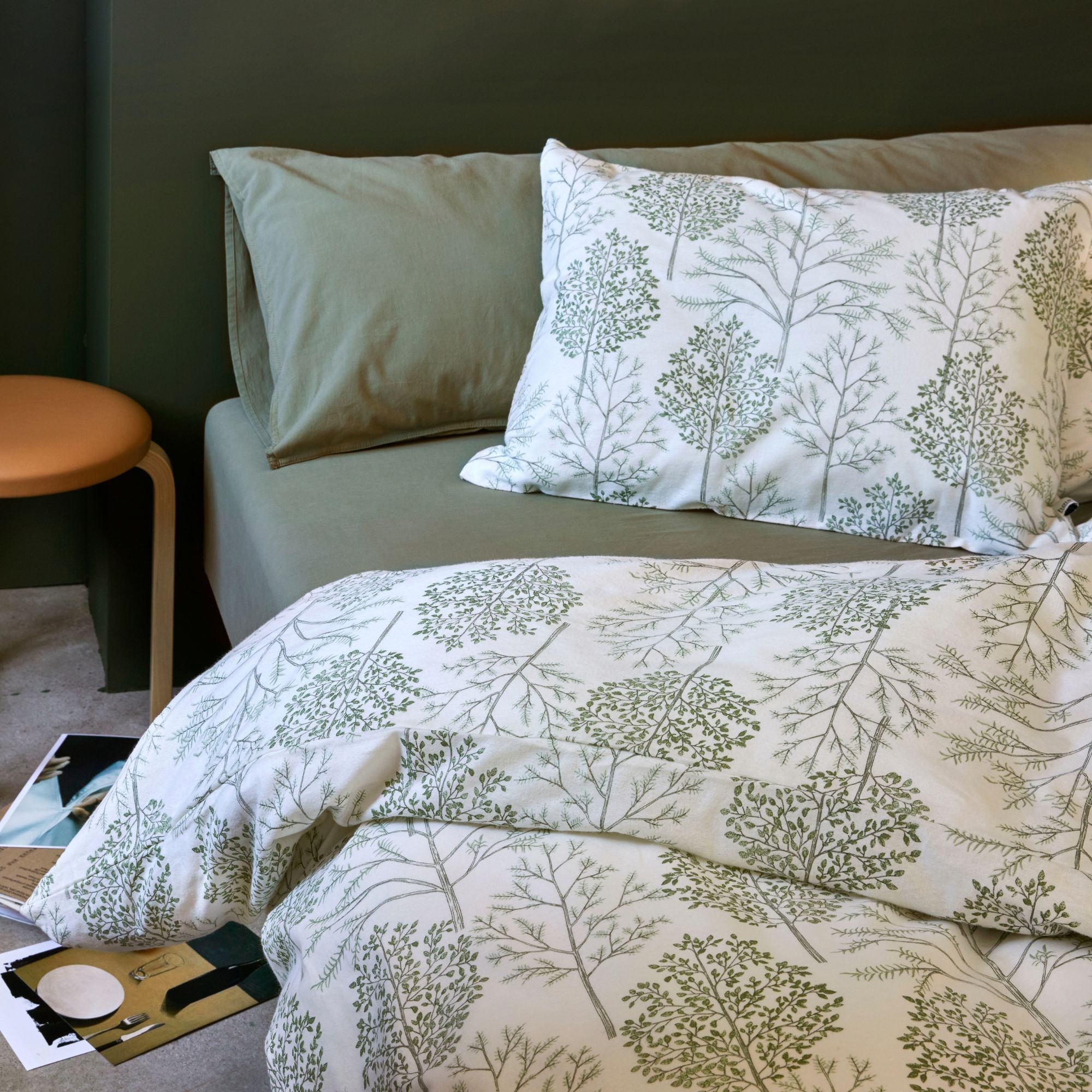 Framsidan »Sängkläder » Enkelt påslakanset » Extra långa sängkläder 140x220 cm Sengetøy av flanell 140x220 cm - Hvitt sengesett med grønne trær - 100% bomulls flanell - Thea Høie of Scandinavia sengelinned Spara30% Høie Of Scandinavia 999,00699,00SEKSpara 300,- Fåtal i lager Trustpilot Antal Lägg i varukorgen Se mer från: Høie Of Scandinavia Artikelnummer:8411-2 Läs vår sengetøjsguide Se vårt store utvalg av overmadrasslaken Se vårt store utvalg av dyner 140x220 Har du frågor om produkten? Åndbart og behageligtEkstra blødt og varmtSlidstærkt bomuld Dynebetræk: 140x220 cm Pudebetræk: 60x63 cm Materiale: 100% bomullsflanell Vævning: 220TC (Thread count = antal tråde pr. kvadrattomme) Farve: Hvid med grønne træer Design: Thea Brand: Høie of Scandinavia Lukning: Dynebetræk med lynlås, pudebetræk med overlap Vask: 60° Tørretumbling: Ja Tåler strygning: Ja Certificering: EASY CARE behandlet, hvilket betyder det ikke krøller efter vask Certificering: GREEN by STANDARD 100 by OEKO-TEX® (M2AMSTPZ2). Din garanti for at produktet er fri for sundhedsskadelig kemi. Blødt og lækkert sengesæt produceret i 100% bomullsflanell. Den unikke fornemmelse af flanell kommer, når du børster overfladen af den fine bomuld. Den får flanell til at opleves som lun og blød. Sengetøyet er av en ekstra fin bomull, som er kendt for sin blødhed og store slidstyrke. Sengetøy av flanell fra Høie er fremstillet av 100% bomullsflanell, som er kjent for sin bløde, let opkradsede og vamsede overflate. Bomullsfibrene er børstet på overflaten hvilket skaper en ekstra blød og vamsed overflate. Denne overflaten gir sengetøy av flanell dets karakteristiske og velkjente blødhed og varme, som er med til å skape en deilig lun og behagelig soveopplevelse. Især på kjølige netter er sengetøyet en favorit, da 100% bomullsflanell er åndbart og samtidig god til å holde på varmen. Sengetøyet er OEKO-TEX sertifisert. Det er din garanti for at sengetøyet er testet og fri for skadelige stoffer, dessuten er sengetøyet allergivennligt. Høie sengelinned er også Easy Care behandlet, for mindre krøll og bedre facon efter vask. Easy Care gjør ditt sengetøy ekstra komfortabelt og lett å stryke. Frisk ditt soverom opp med dette smukke og luksuriøse sengesett. Utnytt samtidig sjansen for å øke din søvnkomfort ved å tilføre et nytt, blødt kvalitetslaken. Du finner vårt store sortiment av kvalitets overmadrasslaken her Høie er et skandinavisk brand som står for tradisjon forenet med nytenkning. Firmaet har eksistert siden 1850 og har gjennom årene vært med til å forme og utvikle skandinavisk tekstil og design. Sengetøy fra Høie, er hverdags luksus som alle fortjener. Tillbaka till Extra långa sängkläder 140x220 cm