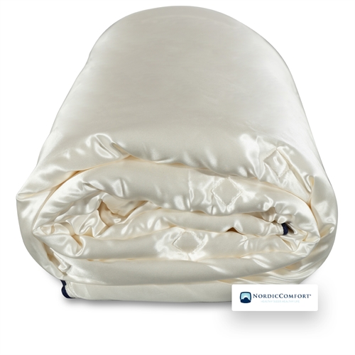 Framsidan »Täcken » Typ av täcke » Silkestäcken Silkestäcke 140x220 cm - Nordic Comfort helårstäcke - Excellence Silke långfibrigt 100% mullbärssilke Spara40% Nordic comfort 9.399,005.599,00SEKSpara 3.800,- Fri frakt på denna varaI lager Trustpilot Antal Lägg i varukorgen Se mer från: Nordic comfort Artikelnummer:3404 Läs vår täckesguide Läs om underhåll av täcken och kuddar Se vårt stora utbud av kuddar Har du frågor om produkten? Silkestäcke - Excellence silkeFrån: Nordic ComfortHandgjord - Långfibrig mullbärssilke Storlek: 140x220 cm - Extra längd Typ: Helårstäcke i silke Varumärke: Nordic Comfort - Excellence Silk Fyllning: Ekologiskt odlat långfibrigt mullbärssilke Silkestäthet: 275 g m2 Fyllnadsvikt: 815 g Yttertyg: Mjukt, exklusivt yttertyg Tvätt: Ja, kan tvättas i maskin (Viktigt att använda enzymfritt tvättmedel) Garanti: 10 år Levereras i exklusiv bärväska Certifiering: Crossvent och SilkFX Certifiering: STANDARD 100 by OEKO-TEX® (SHHO 090844) Se alla våra silkekuddar här Silk Excellence är det allra bästa inom Nordic Comforts produktlinje. Silkestäcket är tillverkat med SilkFX-teknologi, som använder långfibrigt mullbärssilkefyllning och 100% mullbärssilke som yttertyg. Det är handgjort och är det ursprungliga silkestäcket och kudde med 100% långfibrigt mullbärssilke, sträckt för hand och lagt i flera hundra lager av ekologisk silkefyllning. Yttertyg i randigt mullbärssilke är ren lyx. När bara de bästa materialen är tillräckligt bra. Silk Excellence-täcket har SilkFX-teknik, så att du enkelt kan tvätta täcket hemma. Vi rekommenderar Silk Excellence till dig som vill ha det ursprungliga silkestäcket, där du får ut det mesta av alla fördelarna. Täcket är lättare än andra täcken tack vare sitt silkehölje istället för bomullshölje. Detta silkestäcke har 10 års garanti. Nordic Comfort® är Danmarks mest sålda silkestäcke! Det finns naturligtvis en anledning till det. Egenskaper: Lyxig silkefiber Upplev det ultimata inom sovkomfort Temperaturreglerande Förbättrar hälsosam och djup sömn som anpassar sig efter din kroppstemperatur Allergivänlig Stöter bort husdammskvalster och allergener – färre allergiska reaktioner Antibakteriellt Skapar en renare och hälsosammare sovmiljö Fuktabsorberande Minskar nattsvett och fuktig sovmiljö Andningsförmåga Låter din kropp andas naturligt och minskar överhettning på natten Nordens mest sålda silkeprodukter är från Nordic Comfort. Varumärket grundades 2007 och har som mål att producera ett noggrant utvalt silkesortiment av högsta kvalitet för konsumenten. Med hjälp av deras sömnexperter kan du uppnå en optimal och förbättrad nattsömn. Tillbaka till Silkestäcken