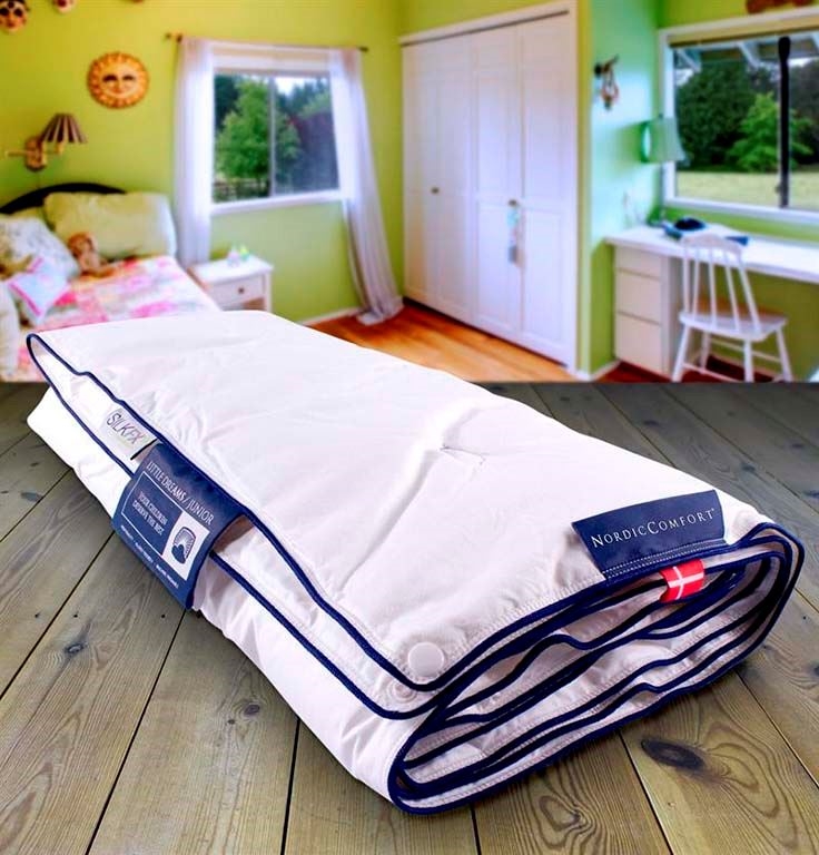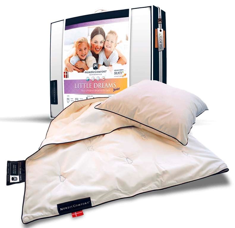 Framsidan »Inredning » Barnrummet » Juniordyna 100x140 cm Silkestäcke för barn - medelvarmt helårstäcke - 115x130 cm - Nordic Comfort Spara37% Nordic comfort 1.899,001.199,00SEKSpara 700,- Fri frakt på denna varaFåtal i lager Trustpilot Antal Lägg i varukorgen Se mer från: Nordic comfort Artikelnummer:0802 Läs vår täckesguide Läs om skötsel av täcken och kuddar Se vårt stora sortiment av kuddar Har du frågor om produkten? Silkestäcke för barnFrån: Nordic ComfortFyllning i 100 % ren mullbärssilke Storlek: 115x130 cm barntäcke Typ: Helår barntäcke av siden Varumärke: Nordic Comfort Little dreams sidentäcke Silkestäthet: 275 g m2 Fyllnadsvikt: 350 g Fyllning: Långfibrigt mullbärssilke Yttertyg: Exklusivt mjuk och tätvävt bomulls-cambric Tvätt: Ja, maskintvätt (Viktigt att använda enzymfritt tvättmedel) Garanti: 10 år Levereras i exklusiv bärväska Certifiering: Crossvent Silk FX Certifiering: STANDARD 100 by OEKO-TEX® (SHHO 090844) När bara det bästa är gott nog för familjens minstingar! Nordic Comfort barntäcke är naturligt och antibakteriellt. Tack vare SilkFX-teknologin är silkesfyllningen tvättbar och täcket kan enkelt tvättas i vanlig maskin. Juniortäcket i silke är förbättrat med CrossVent, utvecklat av Nordic Comfort för ännu bättre ventilation och komfort. Det unika CrossVent-mönstret ökar ventilationen och ger bättre temperaturreglering. Vi rekommenderar detta täcke i silke för barn som är varma om natten. Här får du en högkvalitets täcke med silkens goda egenskaper. Silkestäcket är tillverkat av SilkFX (fyllning av långfibrigt mullbärssilke) och 100% bomullscambic på utsidan.. Detta täcke i silke har 10 års garanti. Egenskaper: -Lyxig silkesfiber Upplev den ultimata sovmiljön -Temperaturreglerande Förbättrar nattsömnen -Allergivänlig Stöter bort husdammskvalster och allergener - minskar allergiska reaktioner -Antibakteriell Renare och hälsosammare sovmiljö -Fuktabsorberande Minskar nattsvett och fuktig sovmiljö -Andningsbar Låter kroppen andas naturligt och minskar nattlig överhettning. Tillbaka till Juniordyna 100x140 cm Du kanske också är intresserad av: Silkeskudde för barn - 40x45 cm - Barnkudde - Nordic ComfortSilkeskudde för barn Långfibrig mullbärssilke Nordic Comfort 699,00 SEK599,00 SEK
