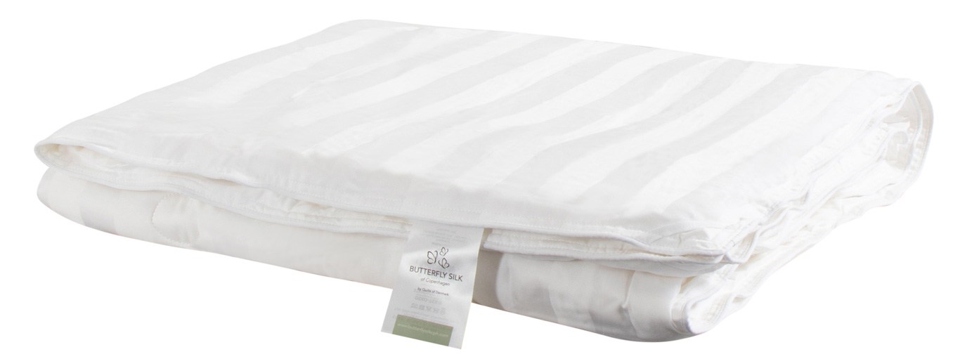 Framsidan »Täcken » Typ av täcke » Silkestäcken Täcke för baby med silke och bambu - 70x100 cm - Helårs täcke för baby - Butterfly Silk Spara35% Butterfly Silk 1.199,00785,00SEKSpara 414,- I lager Trustpilot Antal Lägg i varukorgen Se mer från: Butterfly Silk Artikelnummer:1010471 Läs vår täckesguide Läs om underhåll av täcken och kuddar Se vårt stora utbud av kuddar Har du frågor om produkten? Helårstäcke - Butterfly Silk70x100 cm täcke för baby100% långfibrigt mullbärssilke Storlek: 70x100 cm - Täcke för baby Typ: Helårs baby silkestäcke Varumärke: Butterfly Silk - Silke/bambu Butterfly babytäcke Silkestäthet: 275 g/m² Fyllnadsvikt: 280 g Fyllning: 100 % mulberrysilk Yttertyg: 100 % bambusatin Tvätt: Endast professionell rengöring Allergivenlig: Ja Garanti: 5 år Levereras i exklusiv förvaringsväska Certificering: STANDARD 100 by OEKO-TEX® (1176-194DTI) Se alla våra barnkuddar här Ett överdrag med bambu ger en enhetlig och jämn sömn, eftersom bambu, liksom silke, är effektivt temperaturreglerande. På vintern håller det värmen och på sommaren är det behagligt svalt. Därför är bambu lämpligt året runt. Bambu är mycket fuktabsorberande och avleder snabbt och effektivt överflödig fukt från kroppen. Dessutom avger bambu fukten 3-4 gånger snabbare än till exempel bomull. Därför är bambu lämpligt för barn som är väldigt rastlösa på natten och passar perfekt ihop med silkefyllning. Silkestäcke till baby med bambu, är en av toppmodellerne från Butterfly Silk. Täcket är tillverkat av 100% långfibrigt mullbärssilke, som sträcks för hand och placeras i flera hundra fina lager för att uppnå silkets effektiva temperaturreglerande och fuktabsorberande egenskaper. Tyget är i fin bambusatin, som precis som silke har många bra egenskaper. Alltså en perfekt kombination som passar riktigt bra till silke, för att uppnå bästa resultat för ett mycket andningsbart och allergivänligt täcke. Se vårt stora utbud av sängkläder i baby storlek Både silke och bambu har många fördelar, dokumenterade genom forskning! Allergivänliga Antibakteriella Vätskeabsorberande Temperaturreglerande och avledande Självrengörande Täcken i silke är temperaturreglerande, mycket fuktabsorberande och allergivänliga. Täcket i silke är fyllt med 100% Morbær silke. Mullbärssilke anses vara den bästa typen av silke för att tillverka täcken. Butterfly Silk är ett danskt varumärke med ett stort urval av de finaste silkeprodukterna. Täcken i silke finns i många versioner, alla med 100% morbær silkefyllning, så det finns ett täcke som matchar dina behov. Oavsett om det är ett vanligt täcke i silke, ett lyxigt täcke i silke eller den extra andningsbara bambu/silke-serien, så hittar du det från Butterfly Silk. Silkeprodukterna som du hittar i vårt sortiment är uteslutande tillverkade av 100% morbærsilke, och själva tillverkningsprocessen sker utan användning av kemikalier. Detta säkerställer att produkterna håller absolut högsta kvalitet och inte innehåller skadliga ämnen. Därför är silkesprodukter idealiska för både barn och vuxna med allergi. Tillbaka till Silkestäcken