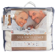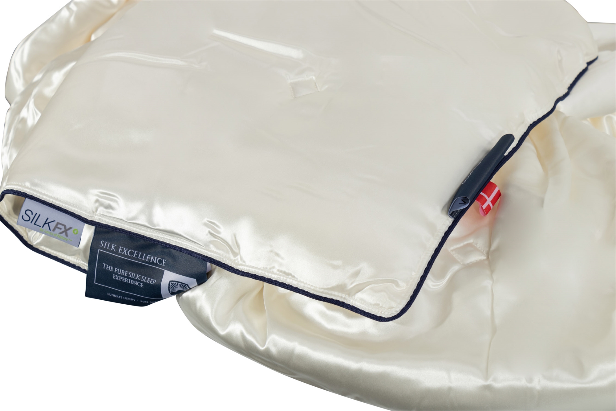 Framsidan »Täcken » Typ av täcke » Silkestäcken Täcke i silke 140x200 cm - Helårstäcke med yttertyg i silke - Nordic Comfort 100% långfibrigt mullbärssilke Spara46% Nordic comfort 8.999,004.899,00SEKSpara 4.100,- Fri frakt på denna varaI lager Trustpilot Antal Lägg i varukorgen Se mer från: Nordic comfort Artikelnummer:3101 Läs vår täckesguide Läs om underhåll av täcken och kuddar Se vårt stora utbud av kuddar Har du frågor om produkten? Täcke i silke - Excellence silkFrån: Nordic ComfortHandgjort - Långfibrigt mullbärssilke + yttertyg i silke Storlek: 140x200 cm Silkestäthet: 275 g/m² Fyllnadsvikt: 745 g Fyllblandning: Ekologiskt odlat långfibrigt mullbärssilke Yttertyg: Mjuk exklusiv yttertyg i silke Tvätt: Ja - Maskintvättbar Namn: Excellence Silk silkestäcke Typ: Helårs varmt silkestäcke Garanti: 10 år Certifiering: Crossvent och SilkFX Certifiering: STANDARD 100 by OEKO-TEX® (SHHO 090844) Levereras i en exklusiv bärväska Silk Excellence är det absolut bästa inom Nordic Comforts produktlinje. Silkestäcket är tillverkat med SilkFX-teknologi, som använder långfibrigt mullbärssilkefyllning och 100% mullbärssilke som yttertyg. Det är handgjort och är det ursprungliga silkestäcket och kudde med 100% långfibrigt mullbärssilke, sträckt för hand och lagt i flera hundra lager av ekologisk silkefyllning. Yttertyg i randigt mullbärssilke är ren lyx. När bara de bästa materialen är tillräckligt bra. Silk Excellence täcket har SilkFX-teknologi, så att du enkelt kan tvätta täcket hemma. Vi rekommenderar Silk Excellence till dig som vill ha det ursprungliga silkestäcket, där du får absolut mest ut av dess goda egenskaper. Täcket är lättare än andra täcken tack vare sitt yttertyg i silke istället för bomull. Detta silkestäcke har 10 års garanti. Nordic Comfort® är Skandinaviens mest sålda silkestäcke! Det finns naturligtvis en anledning till det. Egenskaper: Lyxig silkefiber Upplev det ultimata inom sovkomfort Temperaturreglerande Förbättrar hälsosam och djup sömn som anpassar sig efter din kroppstemperatur Allergivänlig Stöter bort husdammskvalster och allergener – färre allergiska reaktioner Antibakteriellt Skapar en renare och hälsosammare sovmiljö Fuktabsorberande Minskar nattsvett och fuktig sovmiljö Andningsförmåga Låter din kropp andas naturligt och minskar överhettning på natten Nordens mest sålda silkeprodukter är från Nordic Comfort. Varumärket grundades 2007 och har som mål att producera ett noggrant utvalt silkesortiment av högsta kvalitet för konsumenten. Med hjälp av deras sömnexperter kan du uppnå en optimal och förbättrad nattsömn. Tillbaka till Silkestäcken