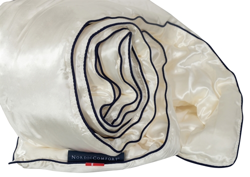 Framsidan »Täcken » Typ av täcke » Silkestäcken Silkestäcke 140x220 cm - Nordic Comfort helårstäcke - Excellence Silke långfibrigt 100% mullbärssilke Spara40% Nordic comfort 9.399,005.599,00SEKSpara 3.800,- Fri frakt på denna varaI lager Trustpilot Antal Lägg i varukorgen Se mer från: Nordic comfort Artikelnummer:3404 Läs vår täckesguide Läs om underhåll av täcken och kuddar Se vårt stora utbud av kuddar Har du frågor om produkten? Silkestäcke - Excellence silkeFrån: Nordic ComfortHandgjord - Långfibrig mullbärssilke Storlek: 140x220 cm - Extra längd Typ: Helårstäcke i silke Varumärke: Nordic Comfort - Excellence Silk Fyllning: Ekologiskt odlat långfibrigt mullbärssilke Silkestäthet: 275 g m2 Fyllnadsvikt: 815 g Yttertyg: Mjukt, exklusivt yttertyg Tvätt: Ja, kan tvättas i maskin (Viktigt att använda enzymfritt tvättmedel) Garanti: 10 år Levereras i exklusiv bärväska Certifiering: Crossvent och SilkFX Certifiering: STANDARD 100 by OEKO-TEX® (SHHO 090844) Se alla våra silkekuddar här Silk Excellence är det allra bästa inom Nordic Comforts produktlinje. Silkestäcket är tillverkat med SilkFX-teknologi, som använder långfibrigt mullbärssilkefyllning och 100% mullbärssilke som yttertyg. Det är handgjort och är det ursprungliga silkestäcket och kudde med 100% långfibrigt mullbärssilke, sträckt för hand och lagt i flera hundra lager av ekologisk silkefyllning. Yttertyg i randigt mullbärssilke är ren lyx. När bara de bästa materialen är tillräckligt bra. Silk Excellence-täcket har SilkFX-teknik, så att du enkelt kan tvätta täcket hemma. Vi rekommenderar Silk Excellence till dig som vill ha det ursprungliga silkestäcket, där du får ut det mesta av alla fördelarna. Täcket är lättare än andra täcken tack vare sitt silkehölje istället för bomullshölje. Detta silkestäcke har 10 års garanti. Nordic Comfort® är Danmarks mest sålda silkestäcke! Det finns naturligtvis en anledning till det. Egenskaper: Lyxig silkefiber Upplev det ultimata inom sovkomfort Temperaturreglerande Förbättrar hälsosam och djup sömn som anpassar sig efter din kroppstemperatur Allergivänlig Stöter bort husdammskvalster och allergener – färre allergiska reaktioner Antibakteriellt Skapar en renare och hälsosammare sovmiljö Fuktabsorberande Minskar nattsvett och fuktig sovmiljö Andningsförmåga Låter din kropp andas naturligt och minskar överhettning på natten Nordens mest sålda silkeprodukter är från Nordic Comfort. Varumärket grundades 2007 och har som mål att producera ett noggrant utvalt silkesortiment av högsta kvalitet för konsumenten. Med hjälp av deras sömnexperter kan du uppnå en optimal och förbättrad nattsömn. Tillbaka till Silkestäcken