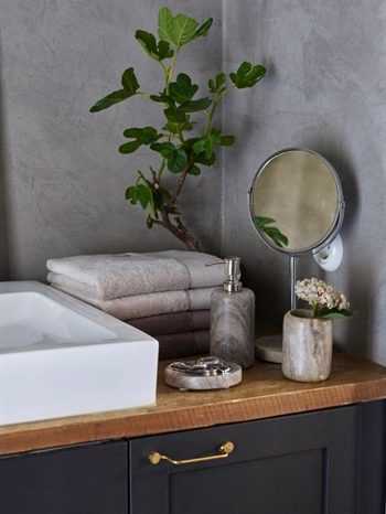 Framsidan »Dekorationsföremål Spara50% Halvor Bakke Sminkspegel - Sten från Halvor Bakke - Sanders - Höjd 35 cm SminkspegelZoomeffekt35x17 cm 599,00299,00SEKSpara 300,- Antal Lägg i varukorgen Fåtal i lager Leverans: 5 dagar Trustpilot Artikelnummer:108357 Specifikationer Typ: Sminkspegel Storlek: 35x17 cm Färg: Krom Material: Krom och sten med marmoreffekt Klassisk sminkspegel – elegans för ditt badrum Denna Halvor Bakke-sminkspegel är designad för att lägga till en touch av elegans till ditt badrum. Med sin klassiska runda design och en höjd på 35 cm är den både praktisk och stilren. Spegeln är vändbar, vilket gör att du kan se ditt ansikte förstorat på ena sidan. Detta är idealiskt för sminkapplicering och hudvårdsrutiner. Vändbar spegel Det smarta med denna sminkspegel är att den är vändbar. Detta gör att du kan växla mellan en vanlig spegel och en förstoringsspegel. Den förstorade sidan är idealisk för precis sminkapplicering och detaljerad hudvård. Denna funktion gör spegeln både funktionell och mångsidig. Ta gärna en titt i kategorin Badrumstillbehör. Se vårt urval av handdukspaket Se vårt urval av förvaring till badrummet Har du frågor om produkten? Läs merDölj FAQ - Vanliga frågorHur är leveranstiden och fraktpriserna?Vi erbjuder snabb leverans av de flesta varor med 1–4 vardagars leveranstid, eftersom vi har eget lager och packar beställningar samma eller nästa dag. Fraktpriserna är låga, och fri frakt vid köp över 1000 kr till GLS-ombud eller hemleverans för 249 kr.Vad händer om jag vill returnera min beställning?Hos HOME-TEX.se har du obegränsad returrätt, så länge varan returneras oanvänd och i originalförpackning. Läs mer här: obegränsad returrättHur skickar jag tillbaka en vara?Du kan använda en BRING-returetikett som kan köpas direkt hos oss och användas för att skicka tillbaka varan till lagret. När du köper returetiketten får du ett fysiskt klistermärke eller en PDF som du kan fästa på paketet och lämna in hos ett ombud. Vad gör jag om det är fel på min vara?Om du mottar en vara med fel eller brister ber vi dig kontakta vår kundservice så snart som möjligt. Tillbaka till Dekorationsföremål