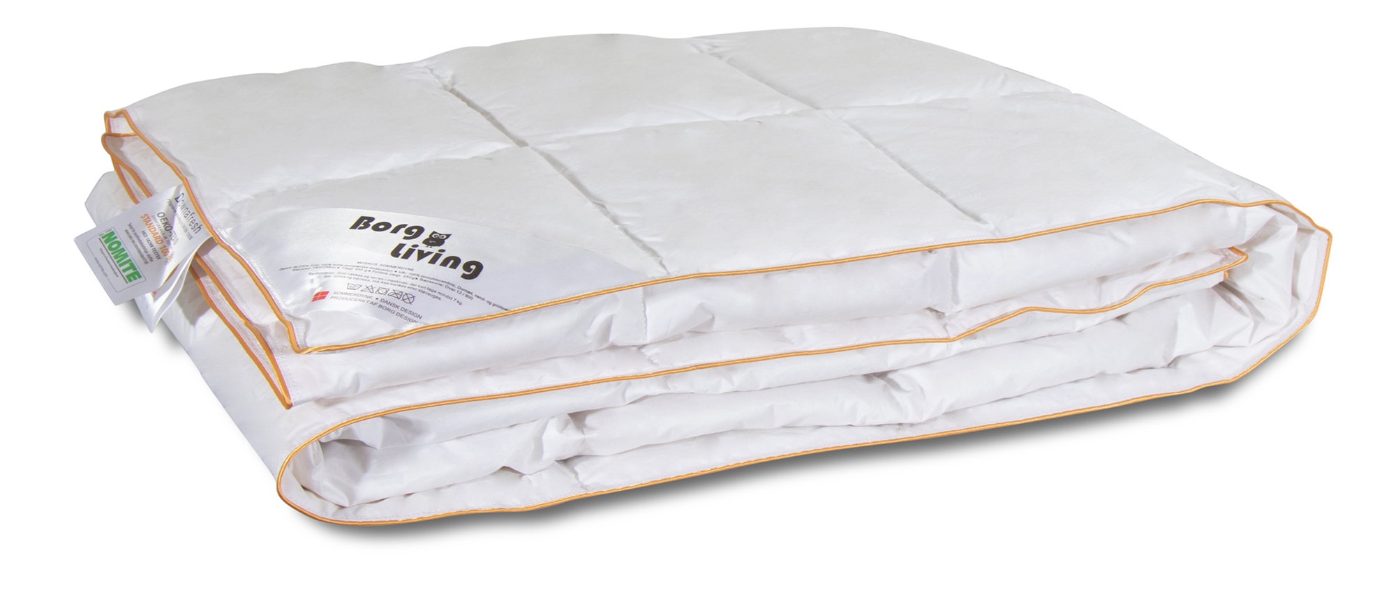 Framsidan »Täcken » Enkeltäcken » Enkeltäcke 150x210 cm (svenska mått) Sommartäcke 150x210 cm - Svalt täcke med myskdun - Borg Living, lätt, svalt och luftigt sommartäcke Spara67% Borg Living 3.899,001.285,00SEKSpara 2.614,- Fri frakt på denna varaI lager Trustpilot Antal Lägg i varukorgen Se mer från: Borg Living Artikelnummer:BL230-3 Läs vår täckesguide Läs om underhåll av täcken och kuddar Se vårt stora utbud av kuddar Har du frågor om produkten? Lyxigt sommartäcke - Lätt och luftigtNOMITE-certifierat - Allergivänligt100 % rena vita myskdun Storlek: 150x210 cm - enkeltäcke Typ: Sommartäcke - Svalt täcke Fyllning: 100 % rena vita europeiska myskdun Varumärke: Borg Living Fyllnadsvikt: 290 g Bärighet: Över 12 (gammal mätmetod) Bärighet: 800 (ny mätmetod) Yttertyg: 100 % superbomullscambric 80\/80 Konstruktion: 7x10 genomsytt kassettäcke med guldkant Tvätt: 60° (Viktigt att använda enzymfritt tvättmedel) Torktumling: Torktumlas med torkbollar Garanti: 5 år Certifiering: NOMITE - Fri från husdammskvalster Certifiering: DOWNAFRESH - 100 % rena dun Certifiering: STANDARD 100 by OEKO-TEX® (BEHO-062282)\/HKD 18299 TESTEX Certifiering: Downpass - Högsta djuretiska förhållanden (06458131) Täcket levereras i en praktisk förvaringsväska Se alla våra kuddar här Härligt svalt och luftigt sommartäcke med 100 % europeiska myskdun - perfekt för de varma sommarnätterna. Täcket är extra lätt och luftigt och rekommenderas för dig som känner dig varm på natten och som tenderar att svettas när du sover. Täckets yttertyg är genomsytt, vilket innebär att täcket har små kanaler mellan kassetterna som kan bidra till förbättrad luftcirkulation. Detta säkerställer en optimal balans mellan värme och andningsförmåga. Täcket har 100 % mjuka, fina ejderdunliknande myskdun vilket gör dess isolationsförmåga helt unik. Täcken med 100 % dun är ofta mer hållbara än blandtäcken. Med rätt skötsel kan de hålla i många år utan att förlora sin mjukhet eller isoleringsförmåga. Täcket har en hög bärighet på över 12, vilket speglar dunens förmåga att hålla värmen och leda bort överflödig fukt - ju högre bärighet, desto bättre kvalitet. Dunens mjukhet och lätthet gör att täcket vilar lätt omkring kroppen. Täcket är sytt i kassetter så att dunen fördelas jämnt i täcket. Sommartäcket har ett härligt mjukt yttertyg i 100 % superbomullscambric som är så tätvävt att dammkvalster inte kan tränga in. Se vårt stora utbud av sängkläder i storlek 150x210 cm här Sommartäcket har flera certifieringar som garanterar en högkvalitativ och hygienisk produkt. Täcket är NOMITE-certifierat, vilket innebär att det är extremt lämpligt för allergiker då det är fritt från husdammskvalster. Täcket är även DOWNAFRESH-certifierat – en certifiering som garanterar att dunen som används har tvättats och rengjorts enligt strikta europeiska standarder. DOWNAFRESH-certifieringen garanterar också att det insamlade dunet uppfyller lagkrav om god djurvälfärd. Det danska varumärket Borg Living producerar exklusiva serier av täcken, kuddar och hemtextilier för ditt hem. Varumärket, etablerat 2013, är känt för sin innovation inom kvalitet och design. Borg Livings fantastiska produkter bidrar till en optimal och bekväm nattsömn, samtidigt som de dekorerar ditt hem med moderna och stiliga hemaccessoarer. Tillbaka till Enkeltäcke 150x210 cm (svenska mått) Du kanske också är intresserad av: Sommartäcke i silke 140x200 cm - Svalt sommartäcke med 100% mullbärssilke - Nordic Comfort täckeSommartäcke - Nordic Comfort Levereras med exklusiv bärväska 100 % rent mullbärssilkefyllning 2.299,00 SEK1.399,00 SEK Danskt gåsduntäcke - 150x210 cm - Sommartäcke - Premium by BorgSommartäcke - By Borg Bärighet: Över 11 100 % gåsdun 3.999,00 SEK1.399,00 SEK