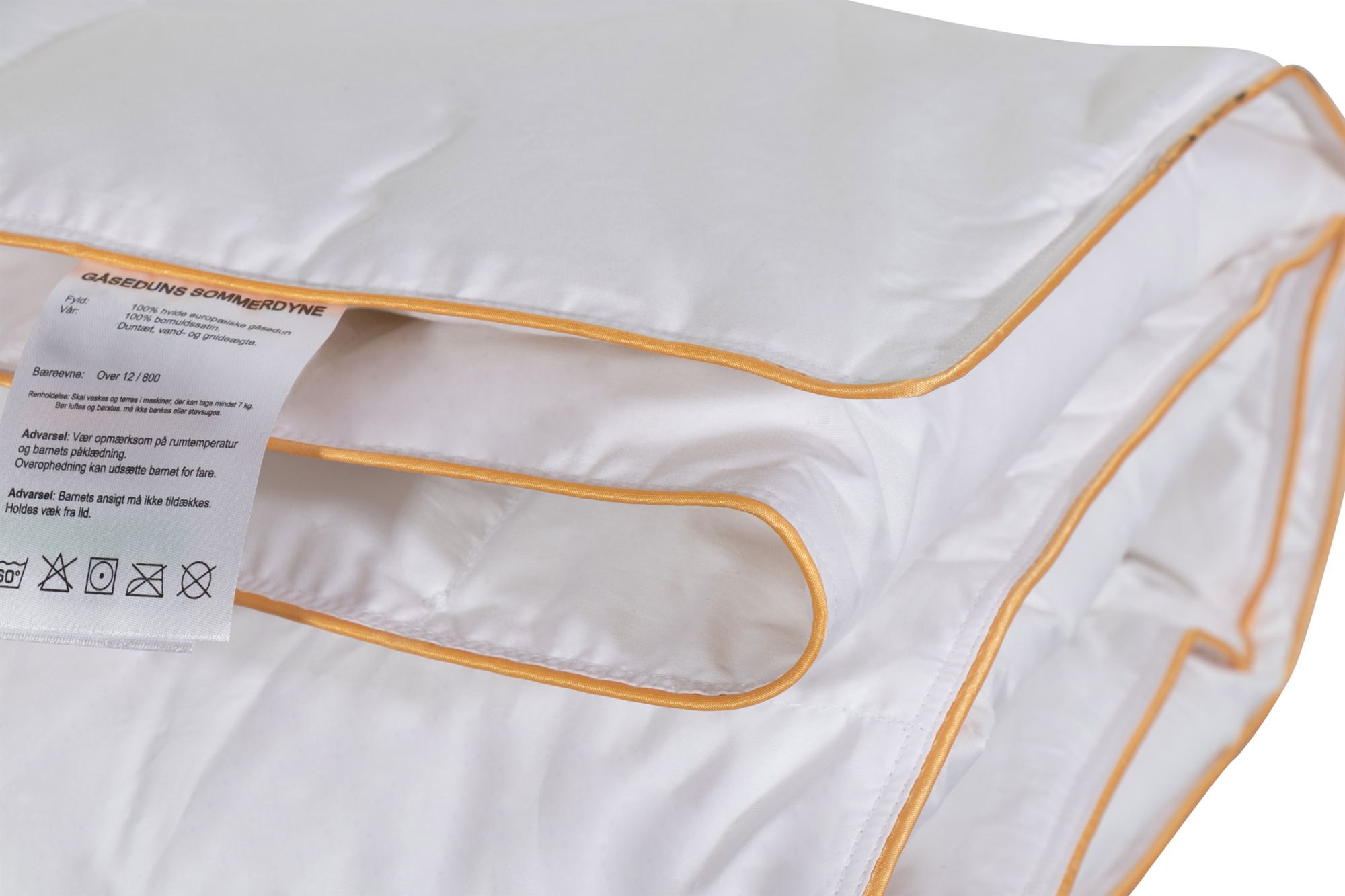 Framsidan »Täcken » Värmeklass » Sommartäcken Sommartäcke för barn med 100% gåsdun - 100x140 cm - Bärighet 12 - Sommartäcke för barn - Borg Living Spara55% Borg Living 2.199,00999,00SEKSpara 1.200,- Fri frakt på denna varaI lager Trustpilot Antal Lägg i varukorgen Se mer från: Borg Living Artikelnummer:BL247 Läs vår täckesguide Läs om underhåll av täcken och kuddar Se vårt stora utbud av kuddar Har du frågor om produkten? AllergivänligtFri från husdammskvalsterVitt och rent europeiskt gåsdun Storlek: 100x140 cm Junior Typ: Sommartäcke Fyllning: 100% vitt och rent europeiskt gåsdun Varumärke: Borg Living Bärighet: Över 12 (Gammal mätmetod) Bärighet: 800 (Ny mätmetod) Fyllnadsvikt: 130 g Yttertyg: 100% bomullssatin Konstruktion: 5x7 kassettäcke med guldkant Tvätt: 60° (Viktigt att använda enzymfritt tvättmedel) Torktumling: Ska torktumlas med torkbollar Garanti: 5 år Certifiering: NOMITE - Allergivänlig och fri från husdammskvalster Certifiering: DOWNAFRESH Greenline - behandlad enligt ekologiska kriterier Certifiering: Down pass - 100% rena dun Certifiering: STANDARD 100 by OEKO-TEX® (HKD18299 TESTEX)/ BJ025 147484 Svalt och luftigt sommartäcke med europeiskt gåsdun - från danska Borg Living. Detta barntäcke är fyllt med 130g. vitt, mjukt och luftigt gåsdun som gör ett fantastiskt sommartäcke. Täcket har en bärighet på över 12 och är särskilt lämpligt för barn, då det mjuka och lätta dunet gör att täcket lätt faller över barnets kropp. Täcket är sytt i kassetter, så att dunet fördelar sig jämnt i täcket. Sommartäcket har ett härligt mjukt yttertyg i 100% bomullssatin som är så tätvävt att dammkvalster inte kan tränga in. BL247 har ett brett utbud av certifieringar, vilket är din garanti för ett bra och hygieniskt kvalitetstäcke. Täcket är NOMITE-certifierat, vilket innebär att täcket är extremt lämpligt för allergiker, då det är fritt från dammkvalster. Täcket är även DOWNAFRESH-certifierat – En certifiering som garanterar att dunet som används under produktionen har tvättats och rengjorts enligt de strikta kraven i europeiska standarder. DOWNAFRESH-certifieringen garanterar också att det insamlade dunet följer lagstiftningen om korrekt djurvälfärd. Det danska varumärket Borg Living producerar exklusiva serier av täcken, kuddar och hemtextilier för ditt hem. Märket som etablerades 2013 är känt för sin innovativa syn på kvalitet och design. Borg Livings fantastiska produkter bidrar till en optimal och bekväm nattsömn och dekorerar ditt hem med moderna och snygga hemaccessoarer. Tillbaka till Sommartäcken