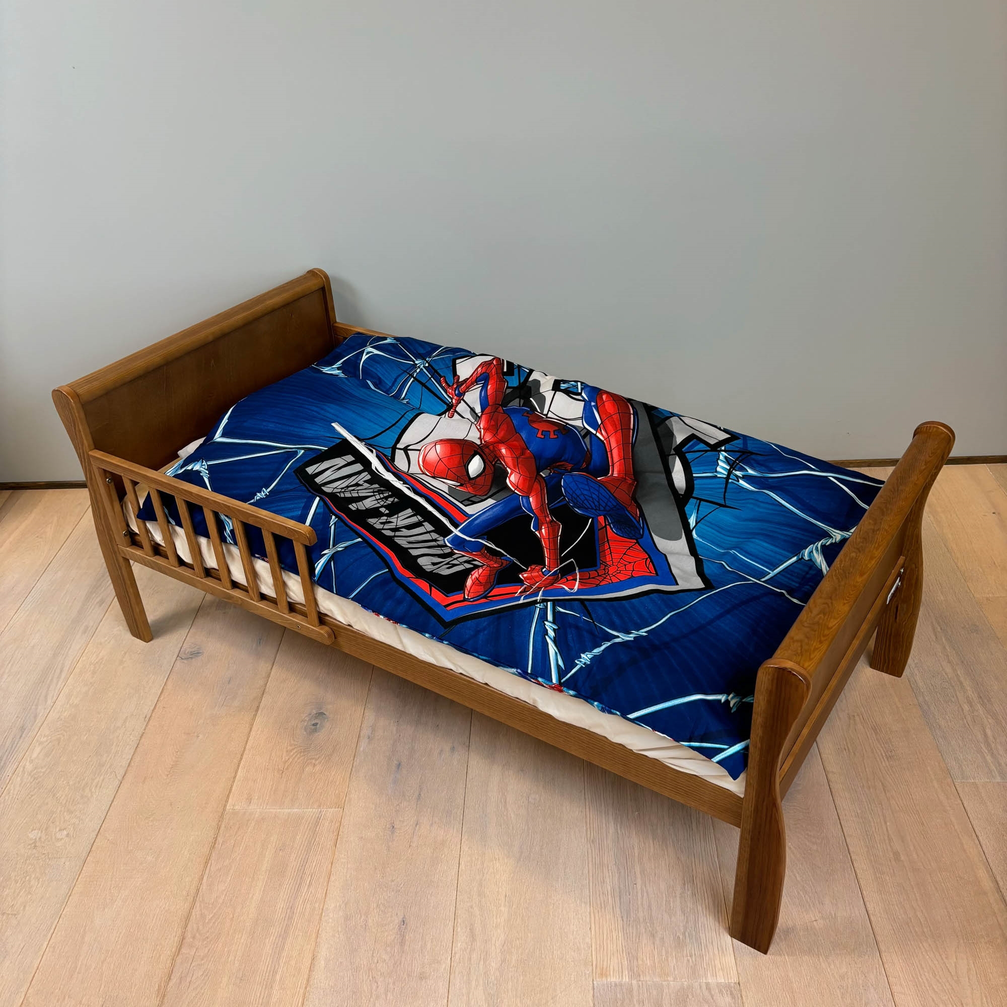 Framsidan »Sängkläder » Sängkläder för barn » Junior sengetøy 100x140 cm Spiderman sengetøy 100x140 cm - Junior sengesett med Spiderman - Vendbart motiv - 100% bomulls sengetøy Spara40% Licens 499,00299,00SEKSpara 200,- I lager Trustpilot Antal Lägg i varukorgen Se mer från: Licens Artikelnummer:1878-8 Les vår sengetøyguide Se vårt store utvalg av overmadrasslaken Se vårt store utvalg av dyner 100x140 Har du frågor om produkten? Mykt & pustende100% myk bomullOEKO-TEX® sertifisert Dynetrekk: 100x140 cm - junior sengesett Pudebetræk: 40x45 cm Materiale: 100% myk bomull Farge: Blå Motiv: Spiderman Design: Vendbart - Forside med motiv av Spiderman, bakside med små motiver av Spiderman Lukning: Dyne med knapper, pudebetræk med overlapp Vask: 60° Tørketromling: Ja Tåler stryking: Ja Sertifisering: STANDARD 100 by OEKO-TEX® (2011PK0073 AITEX). Din garanti for at produktet er fritt for helseskadelige stoffer. Mykt junior sengetøy i 100% bomull, med et smart og gjenkjennelig design av Spiderman. Produsert med lette og pustende bomullsfibre gir sengesettet en følelse av mykhet, som gjør at dynen vil falle naturlig rundt barnet ditt. Balansen i naturlig komfort fra det myke materialet og det koselige Spiderman-designet gjør dette settet til en sikker favoritt hos barnet ditt. Gjør sengetid til et superhelt-eventyr med dette kule Spiderman junior sengetøyet i 100% bomull. Perfekt for barn som elsker Marvels populære superhelt og drømmer om å svinge seg gjennom byen sammen med Spiderman. Sengetøyet har flotte motiver av Spiderman i aksjon og skaper en spennende stemning på barnerommet. Det myke bomullsstoffet føles behagelig mot huden og sikrer en god og trygg nattesøvn. Materialet er pustende, slitesterkt og holder fargene fine vask etter vask. Sengsettet er OEKO-TEX® sertifisert, noe som betyr at det er testet for skadelige stoffer og derfor helt trygt for barn å sove med. Sengetøyet er egnet for daglig bruk, da det er lett å vaske og tåler 60°. Uten behov for stryking beholder det sin mykhet og farge, selv etter flere vask. Se vårt store utvalg av Spiderman-produkter For barnet bør sengen være et trygt sted og alle elementene skal sammen skape myke og deilige omgivelser for barnet å finne ro i. Bruk derfor gjerne barnets interesser for å skape et trygt soverom for barnet. Hos oss kan du finne et stort utvalg av tilbehør til sengen og barnerommet, alt fra overmadrasslaken til dyner, puter, sengetøy og mye mer, og masse produkter med alle barnas favoritter på. Alt sammen elementer som kan bidra til å skape det rette sovemiljøet og rommet for ditt barn. Her kan du finne deilige og myke kvalitets overmadrasslaken til barn Tillbaka till Junior sengetøy 100x140 cm Du kanske också är intresserad av: Junior sengetøy 100x140 cm - Mykt hvitt sengesett i 100% egyptisk bomullssatin - Turiform sengelinnedHøy kvalitet Ekstra fin, myk & pustende Jacquardvevd 799,00 SEK485,00 SEK Dra-på-lakan 70x140 cm - Vit - 100% extra fin bomullssatin - Dra-på-lakan till barnmadrassDra-på-lakan - Vit 100% bomullssatin 70x140x15 cm 599,00 SEK399,00 SEK Madrasskydd för barn - 70x140 cm - Kokäkta bomull - Borg LivingAndningsbar och allergivänlig Mjuk bomull STANDARD 100 by OEKO-TEX®-certifierad 599,00 SEK349,00 SEK Barntäcke - myskdun - 100x140 cm - helårs barntäcke - Borg Living duntäcke100% myskduntäcke Bärighet: över 12 Helårstäcke Rekommenderat försäljningspris : 1.595,00 Spara : 610,00 2.599,00 SEK985,00 SEK
