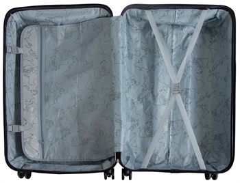 Resväskan är minst lika funktionell invändigt som utvändigt. Resväskan kan delas upp i två separata fack. Ena facket har justerbara korsband för kläderna, så att de håller sig snyggt i resväskan. Det andra facket kan stängas med dragkedja, så att lösa föremål inte glider runt bland dina kläder – enklare blir det inte!