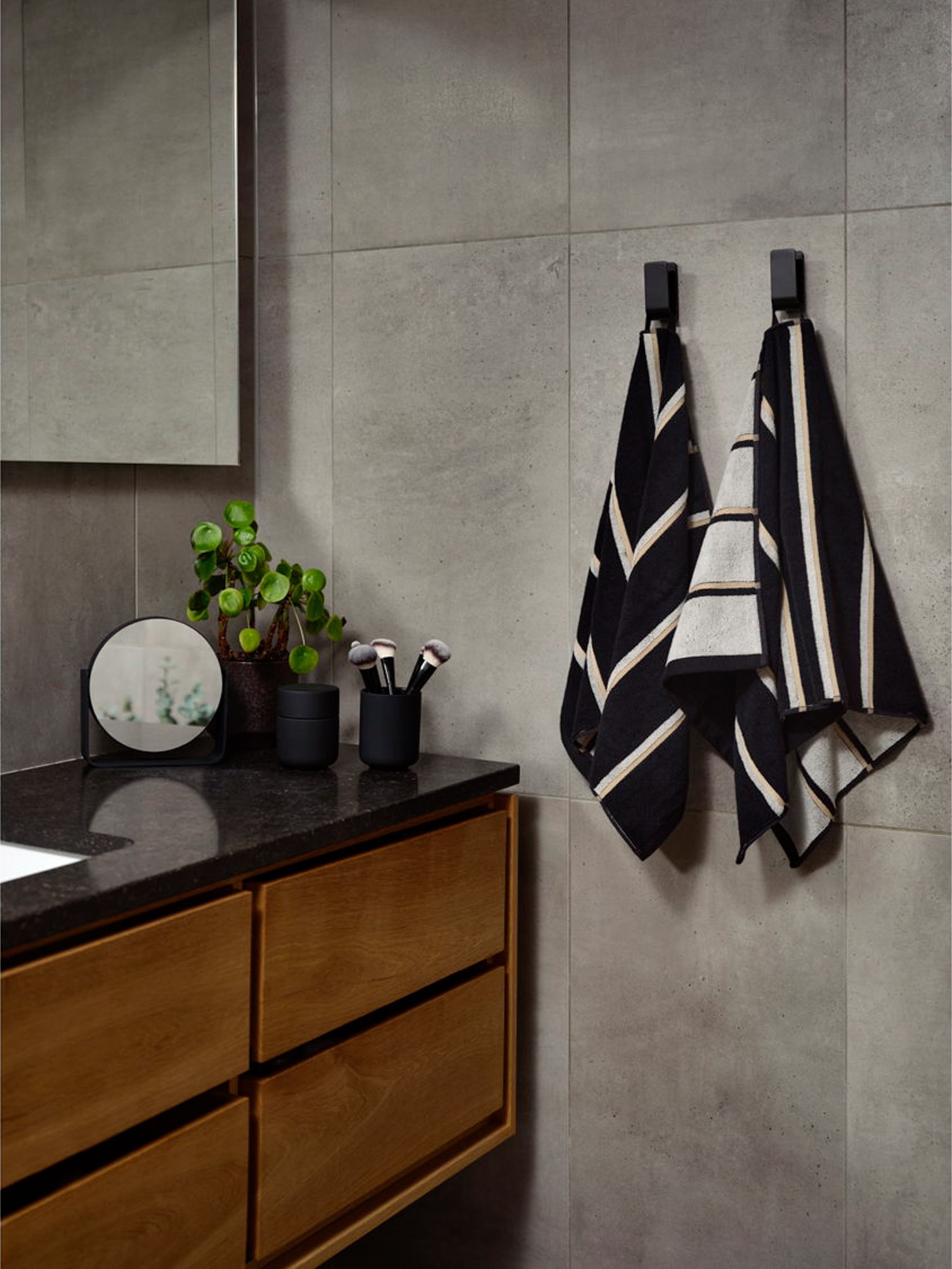 Framsidan »Oversættelse færdig Svart Handduk - 50x100 cm - Zone Denmark Zone Bra pris:249,00SEK I lager Trustpilot Antal Lägg i varukorgen Se mer från: Zone Artikelnummer:37622-3 Se vårt stora utbud av badmattor till golvet Se vårt utbud av handdukspaket Se vårt stora utbud av badrockar för hela familjen Har du frågor om produkten? Typ: HanddukStorlek: 50x100 cmFärg: SvartMaterial: 100% bomull/600 gTvätt: 60°Torktumling: Ja Certifiering: STANDARD 100 by OEKO-TEX® (2668CIT CITEVE) Sauna är namnet – och ränderna talar för sig själva. Serien är inspirerad av de strama linjerna i en klassisk träbeklädd bastu, där designen leker elegant med perspektiv och färgbalans. Varje sida av handduken framhäver sin egen dominerande färg - en fin detalj som ger dig två olika uttryck i en och samma handdukDe retroinspirerade ränderna tillför ett grafiskt, urbant touch, och med en mjuk, kraftig kvalité i garnfärgad 600 g bomull känns handduken precis lika härlig som den ser ut.Välj mellan 50 x 100 och 70 x 140 cm – och låt Sauna sätta sin grafiska, färgglada prägel på ditt badrum. Tillbaka till Oversættelse færdig